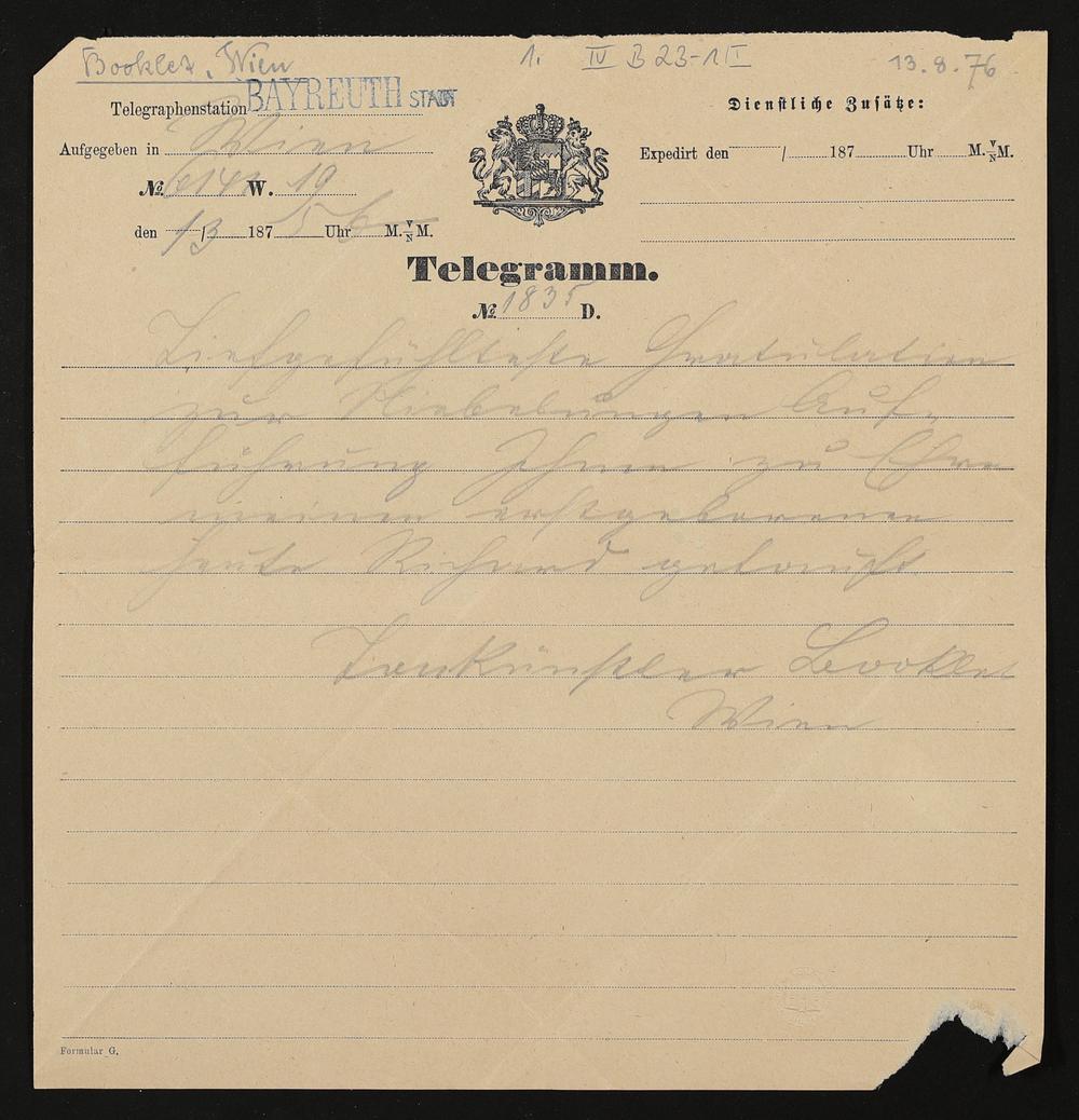 Telegramm von einen unbekannten Absender an Richard Wagner