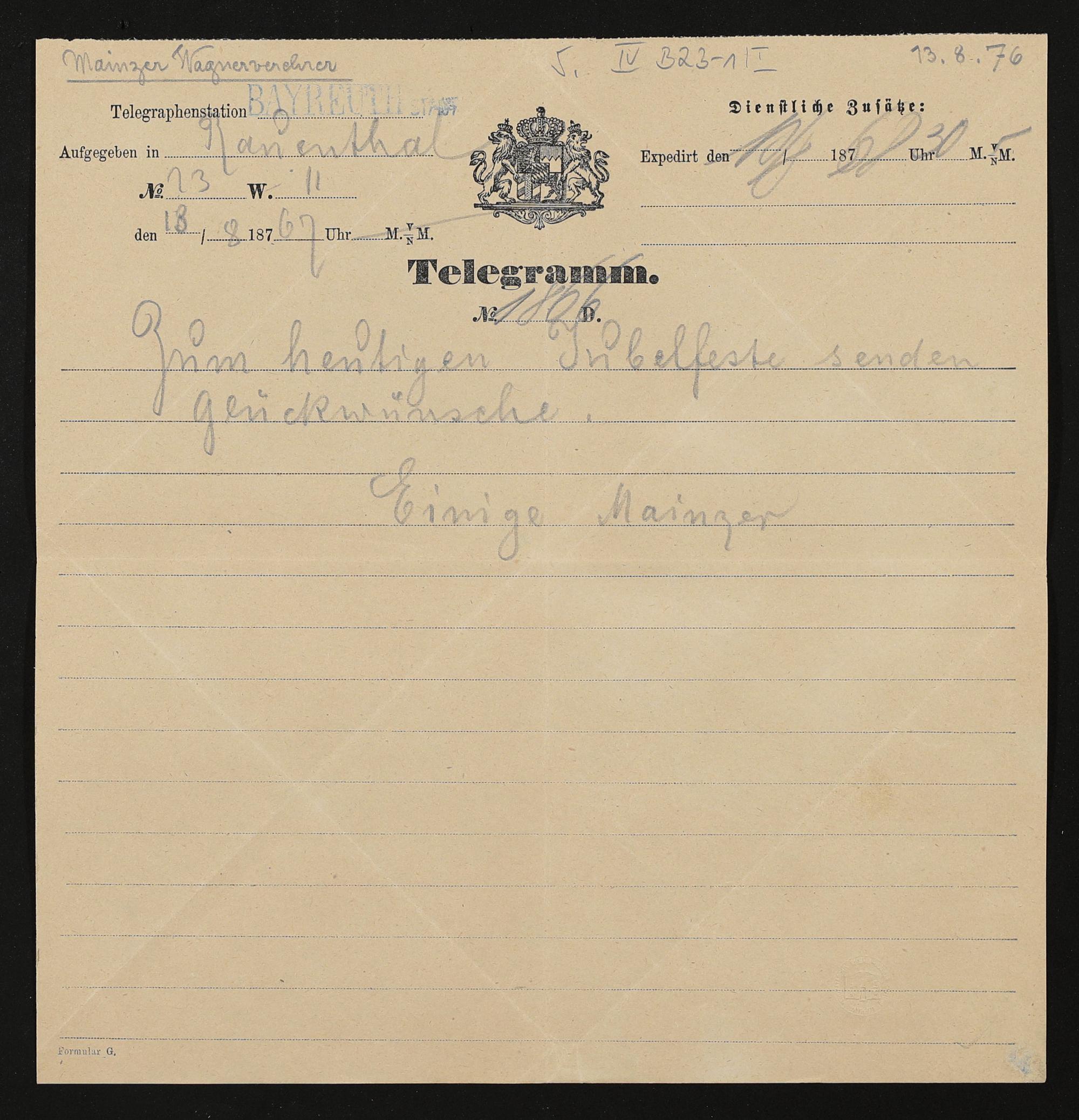 Telegramm von unbekannten Absendern an Richard Wagner