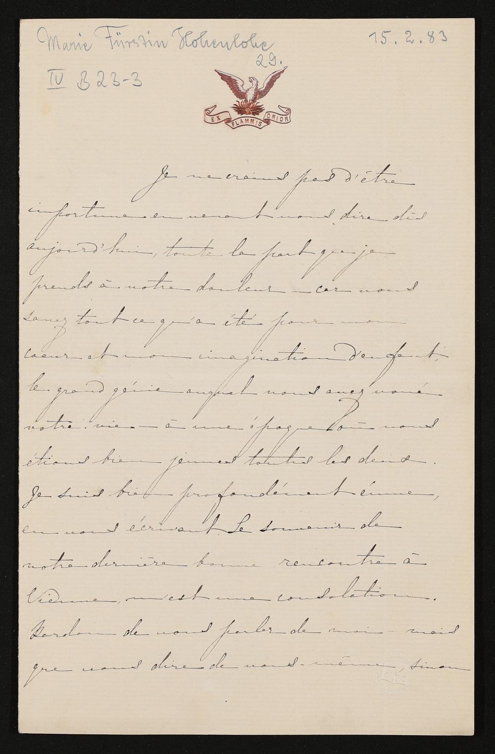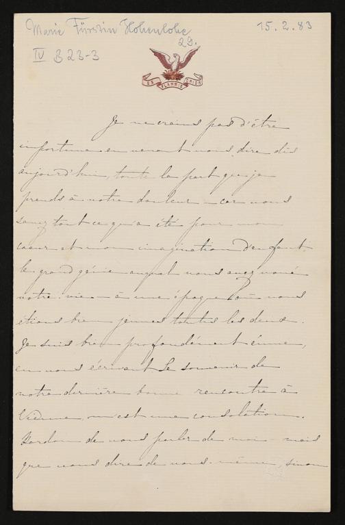 eigenhändiger Brief von Marie zu Hohenlohe an Cosima Wagner