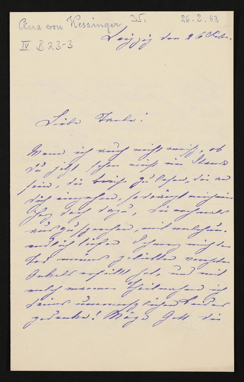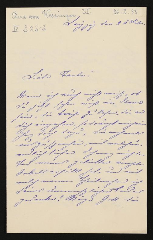 eigenhändiger Brief von Clara von Kessinger an Cosima Wagner