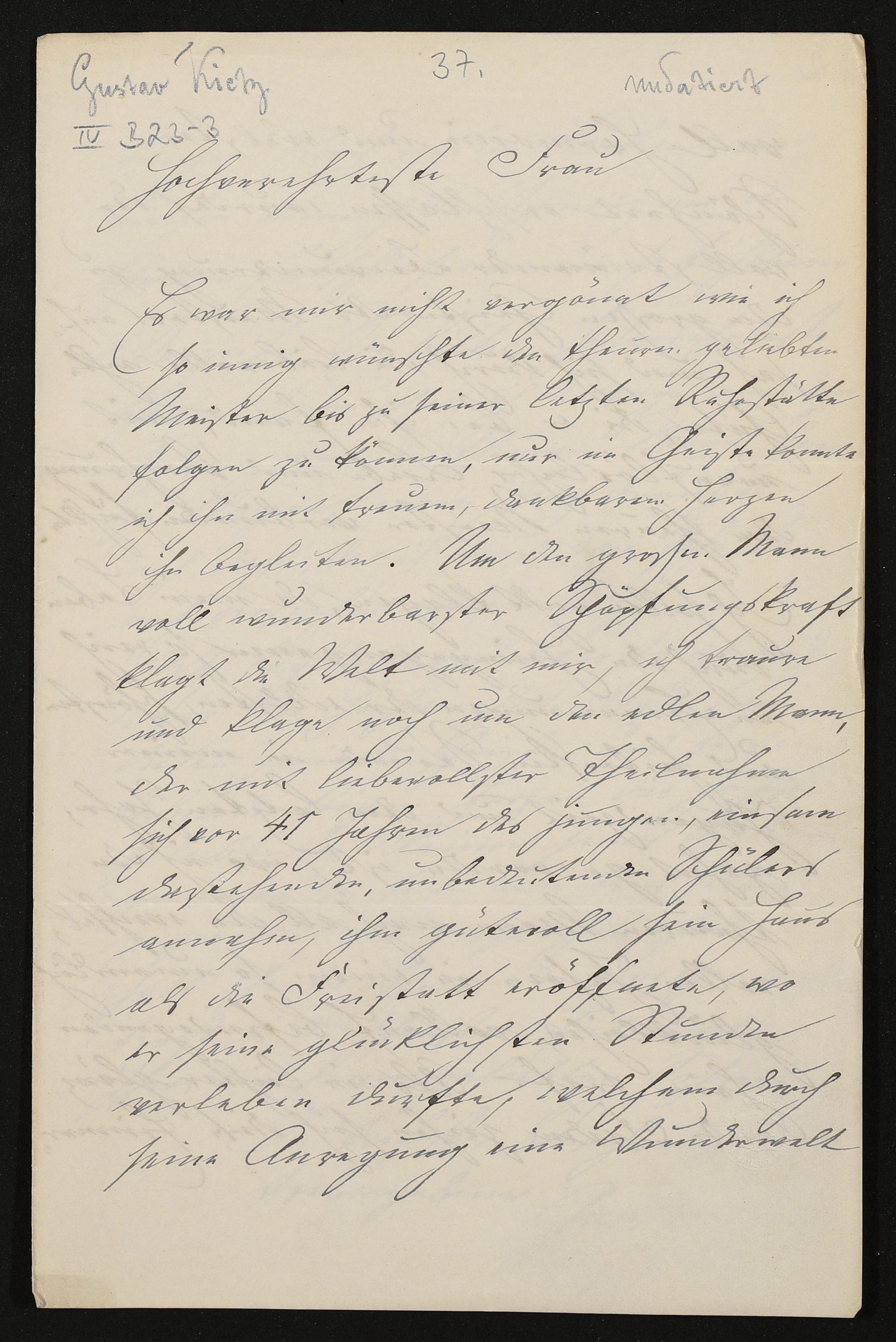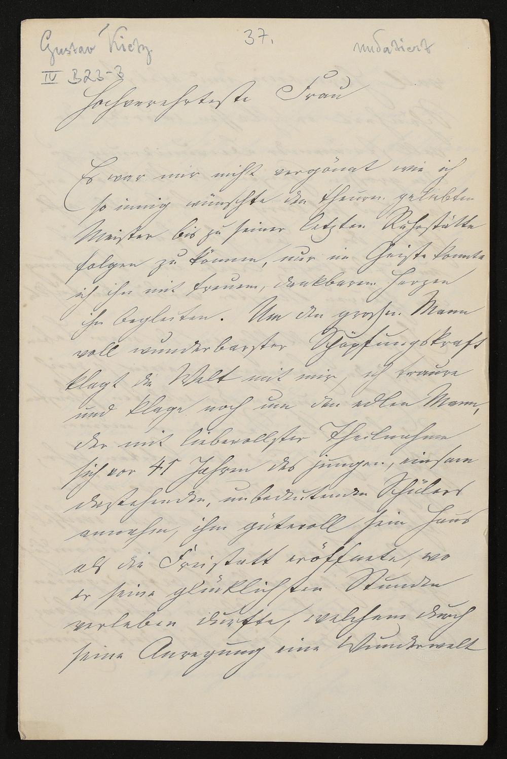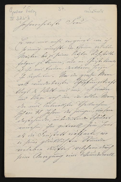 eigenhändiger Brief von Gustav Kietz an Cosima Wagner