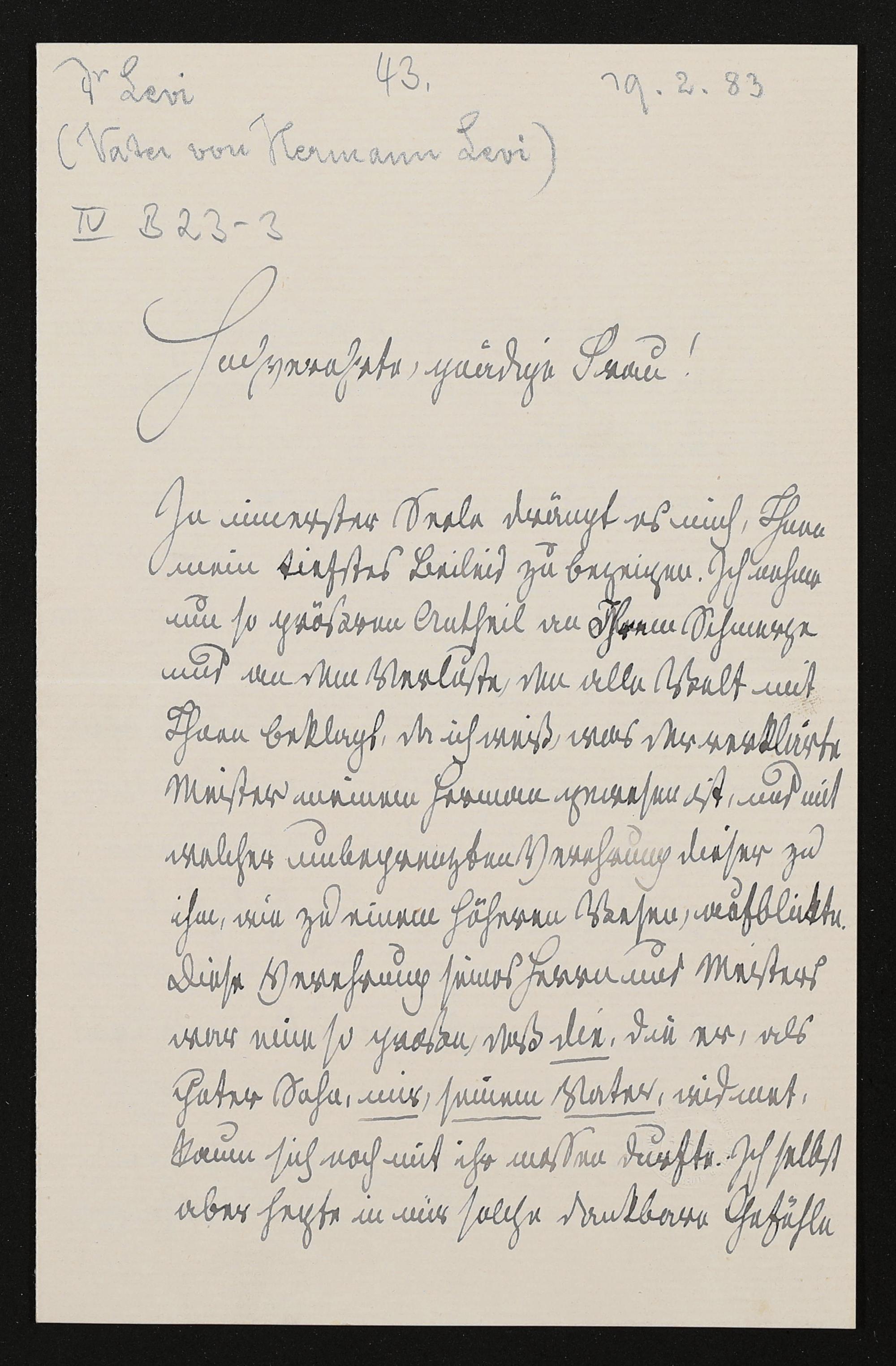 eigenhändiger Brief von Benedikt Levi an Cosima Wagner