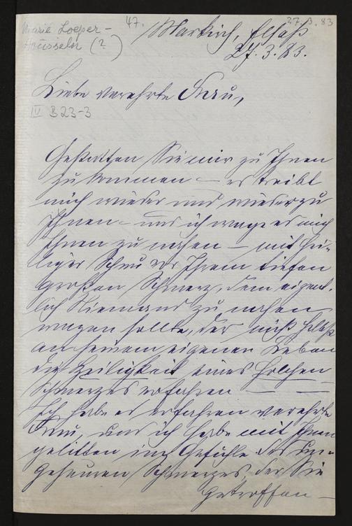 eigenhändiger Brief von Marie Loeper-Housselle an Cosima Wagner