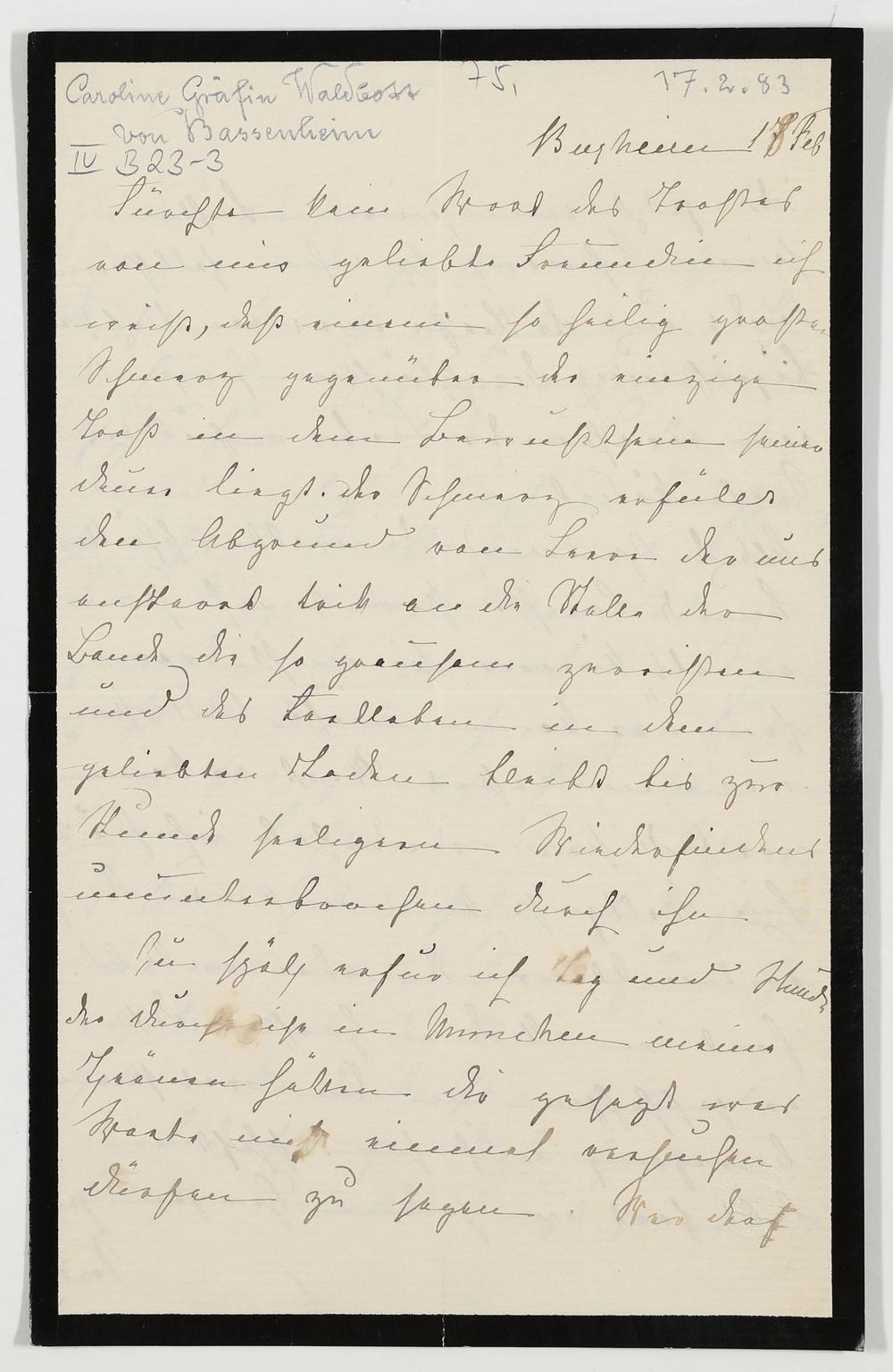 eigenhändiger Brief von Caroline Gräfin Waldbott von Bassenheim an Cosima Wagner