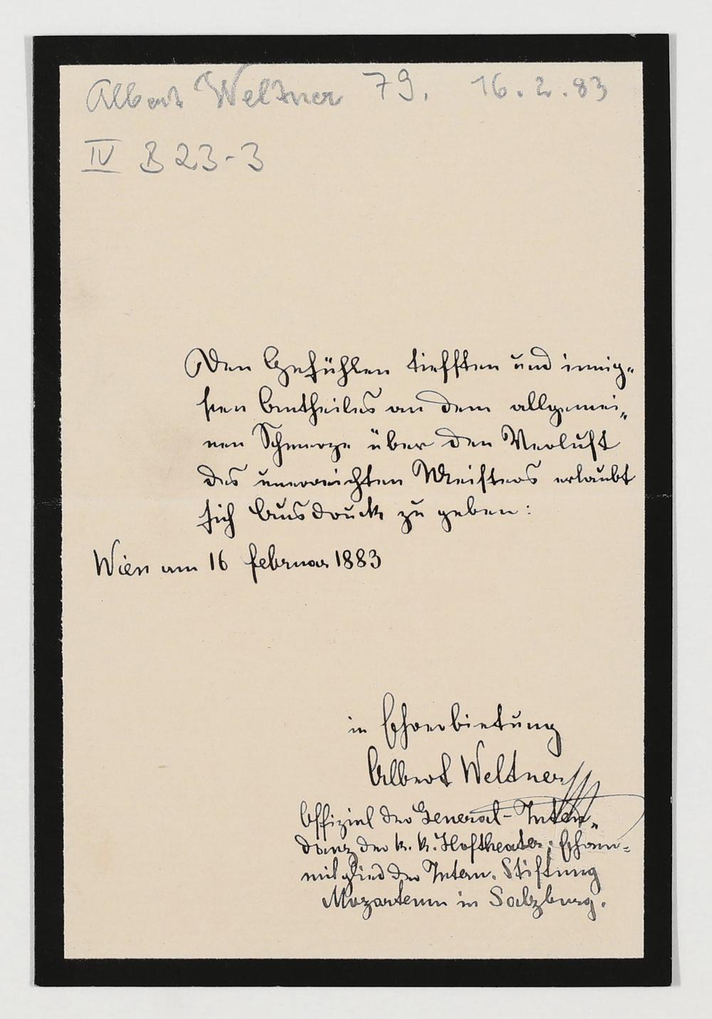eigenhändiger Brief von Albert Weltner an Cosima Wagner