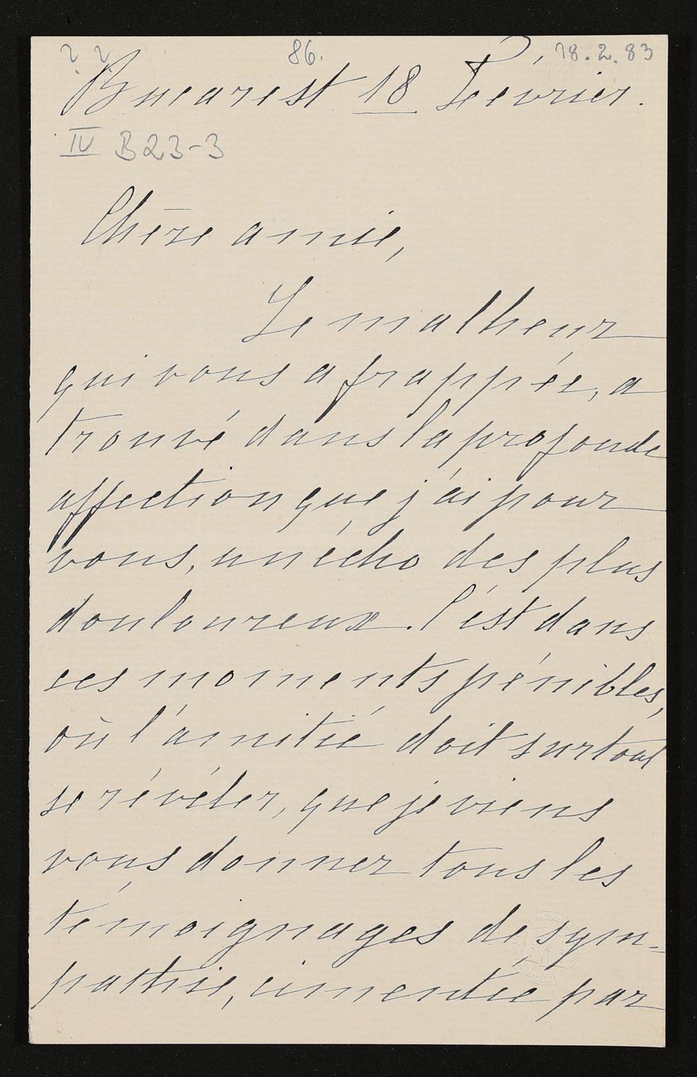 eigenhändiger Brief mutmaßlich von Pauline Viardot an Cosima Wagner