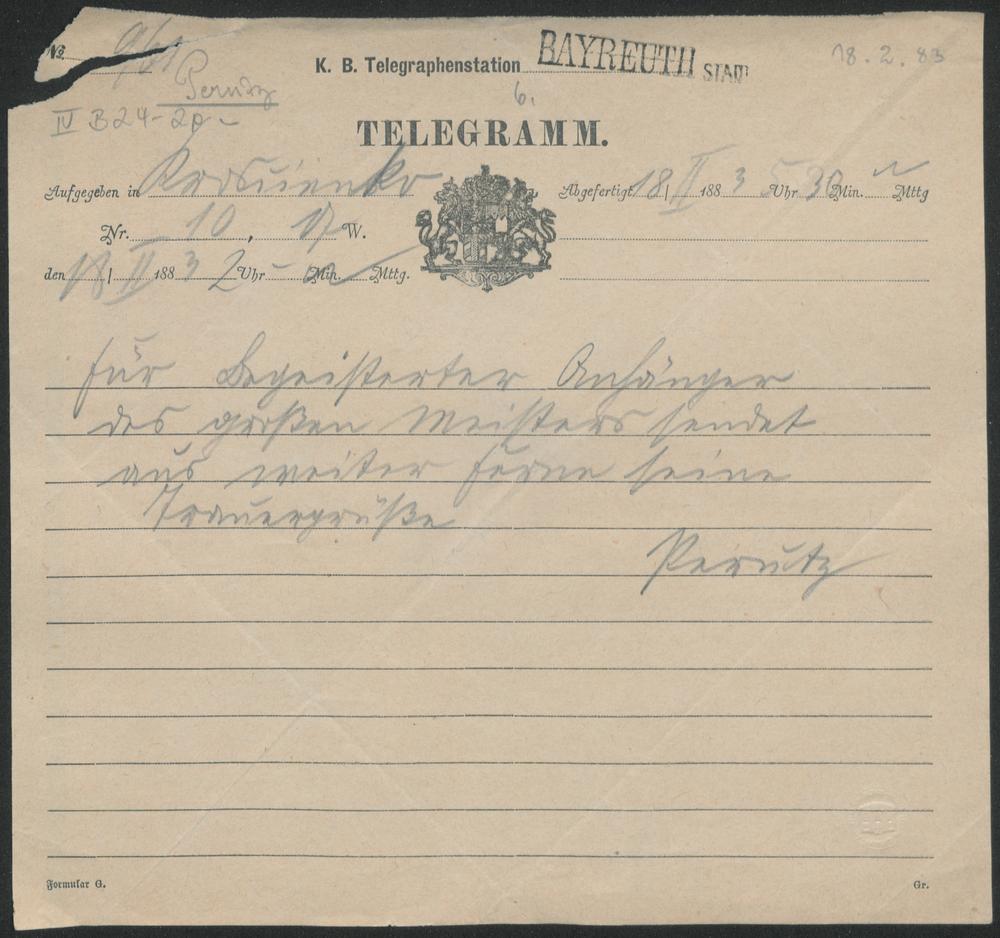 Telegramm von Unbekannt Perntz an Cosima Wagner