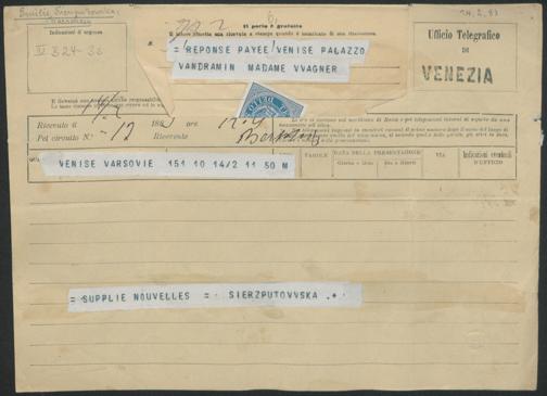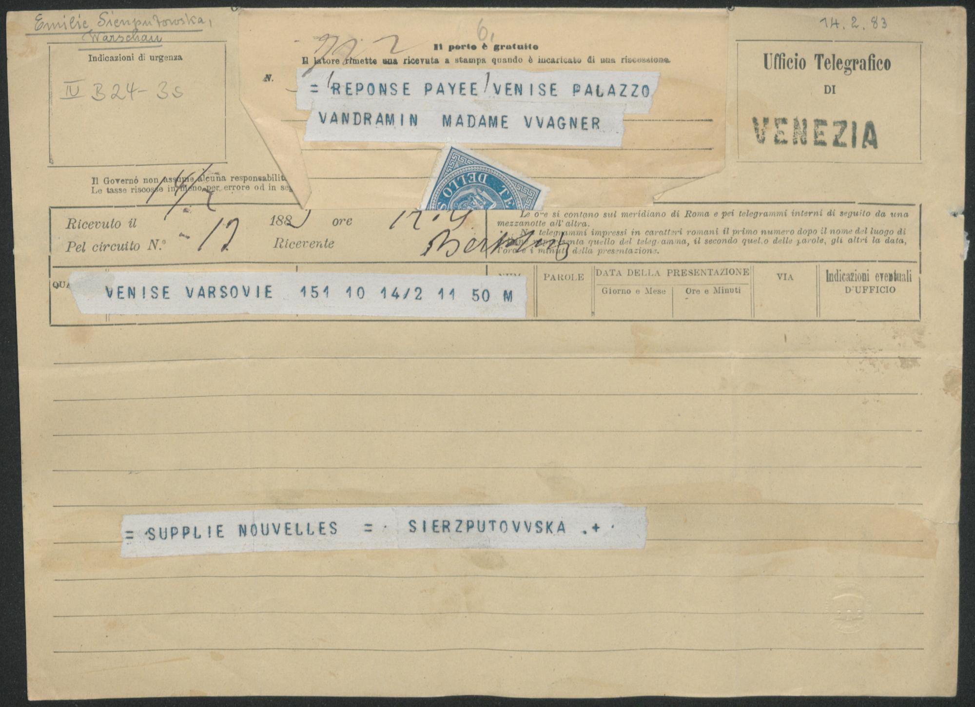 Telegramm von Emilie Sierzpukowska an Cosima Wagner