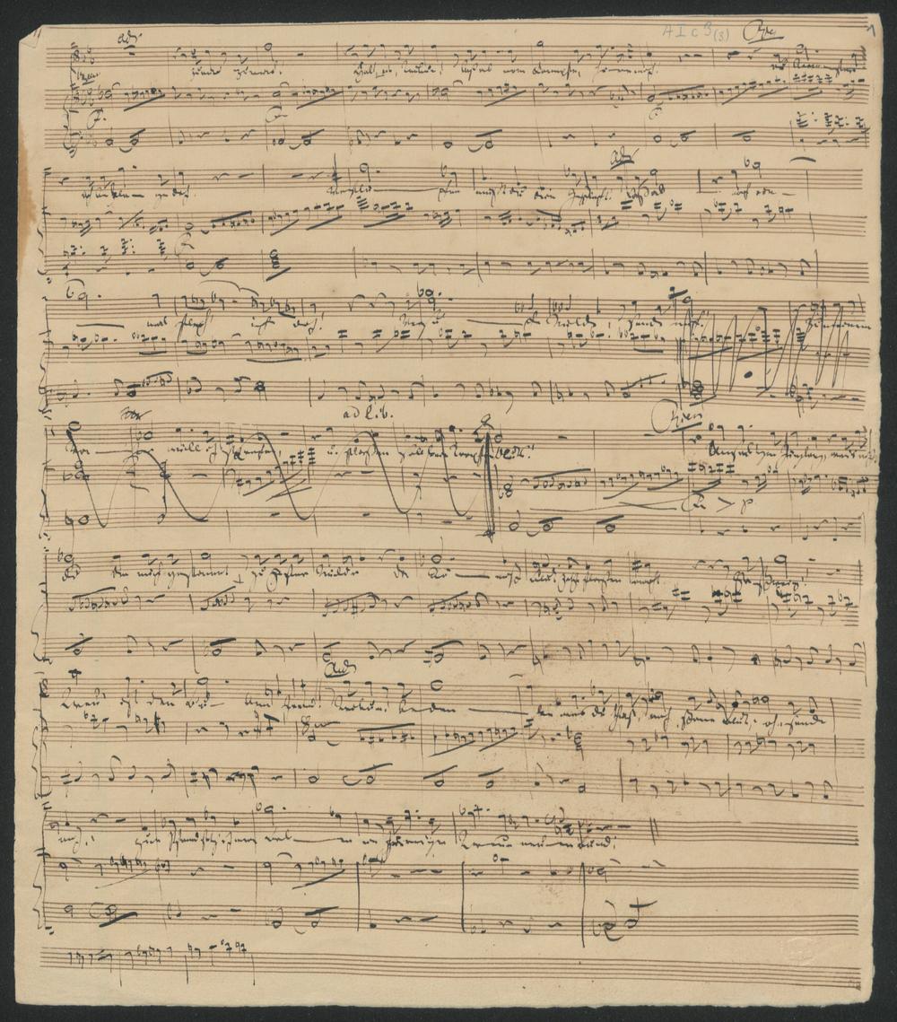 Rienzi, eigenhändige Kompositionsskizze zu Teilen der 3. Szene des 3. Aktes von Richard Wagner; auf Seite 10 eigenhändige Skizze zu "Adieux de Marie Stuart" (WWV 61) von Richard Wagner