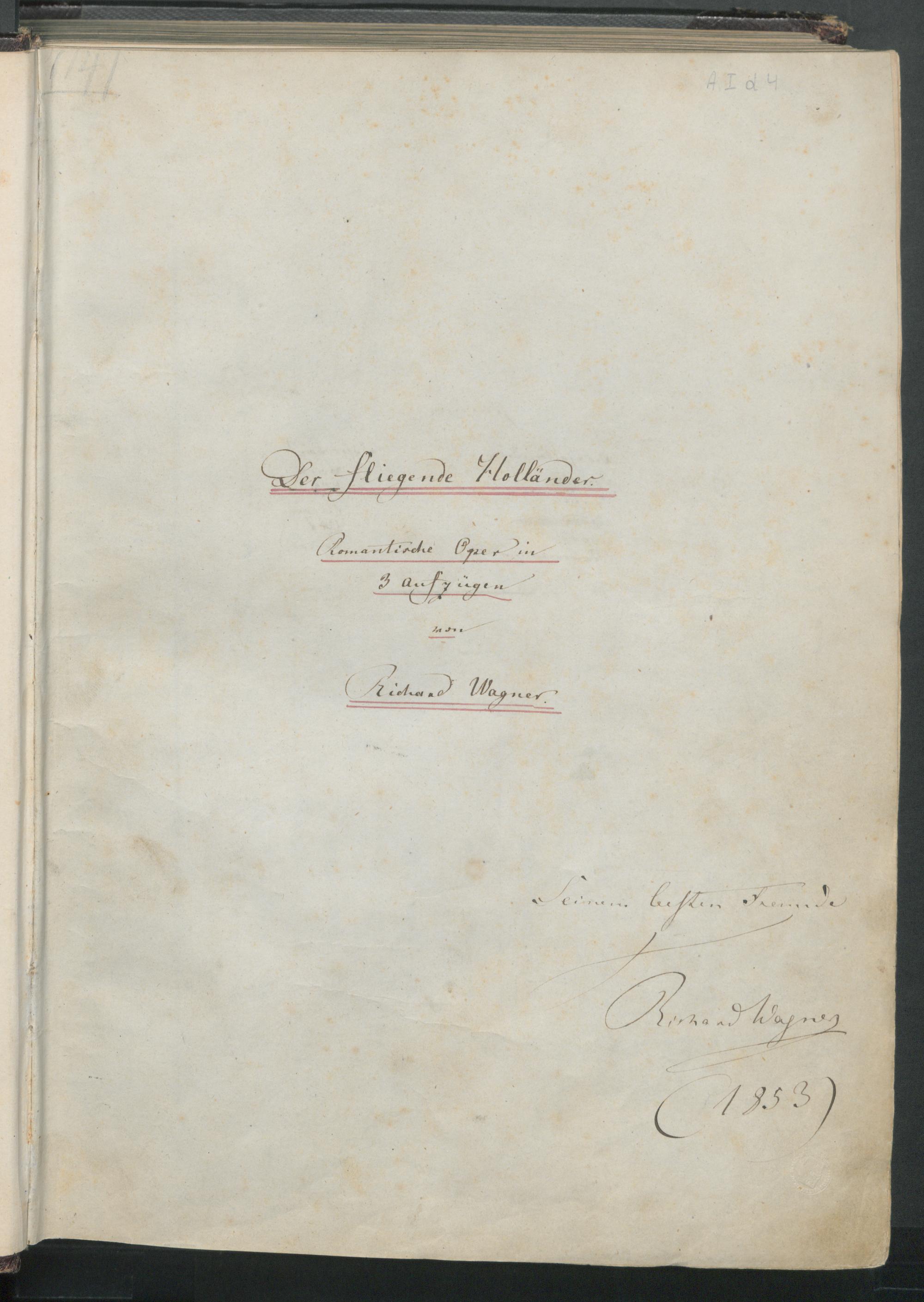 Der fliegende Holländer : romantische Oper in 3 Aufzügen, eigenhändige Partitur von Richard Wagner