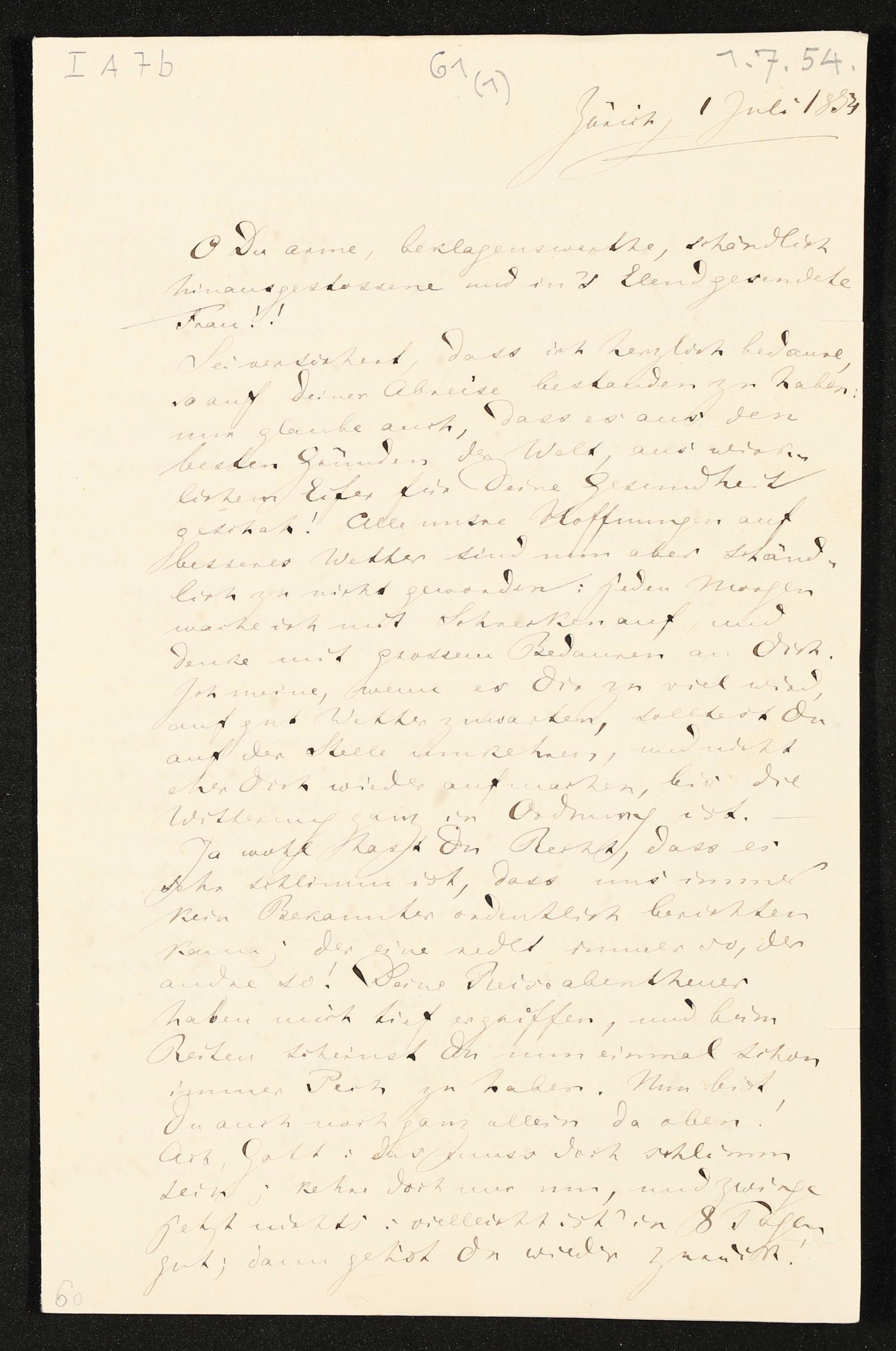 eigenhändiger Brief von Richard Wagner an Minna Wagner
