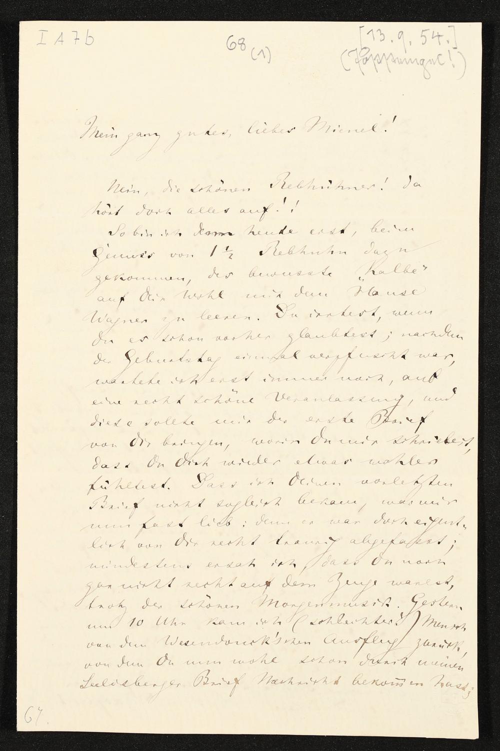 eigenhändiger Brief von Richard Wagner an Minna Wagner