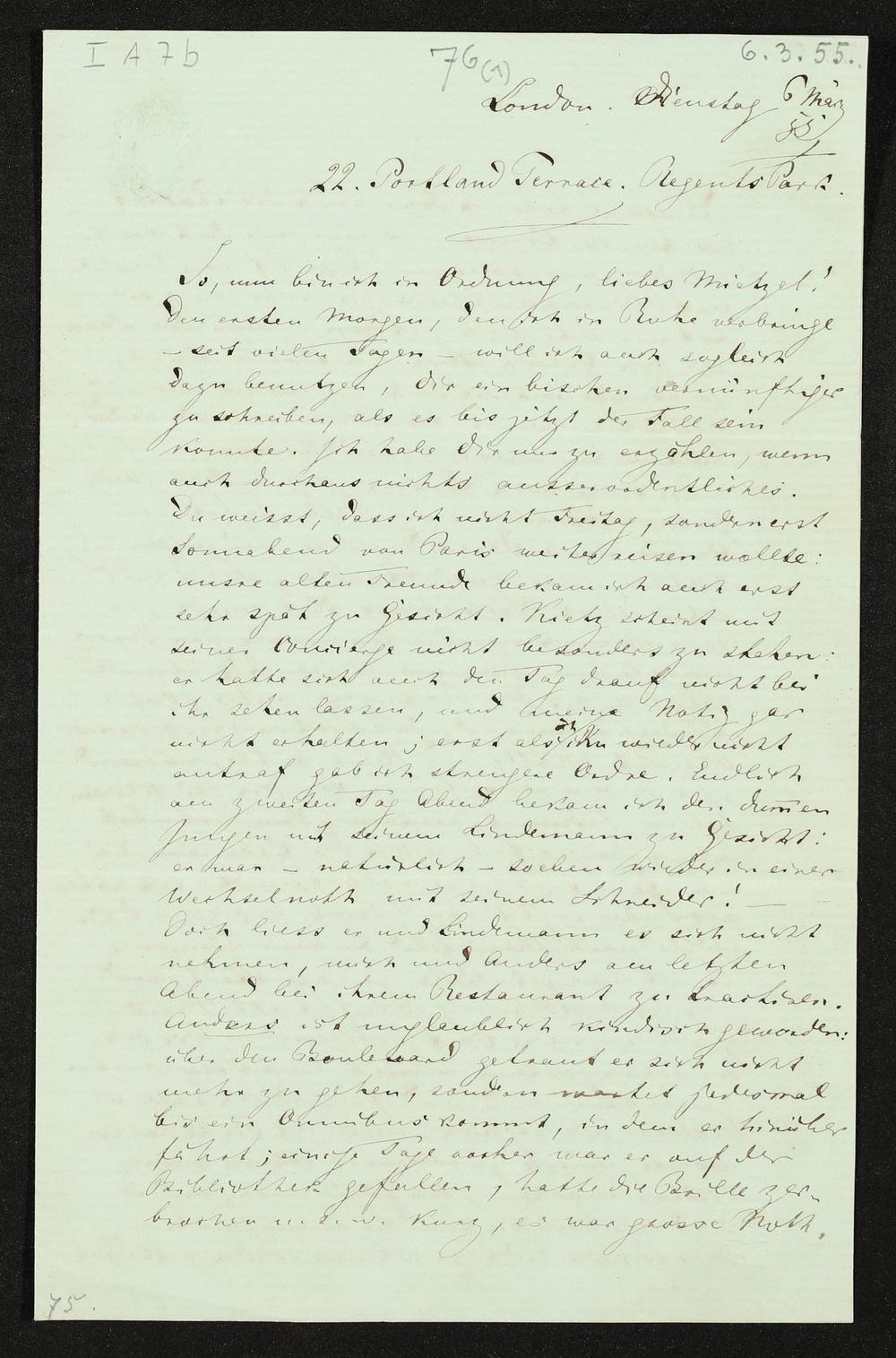 eigenhändiger Brief von Richard Wagner an Minna Wagner