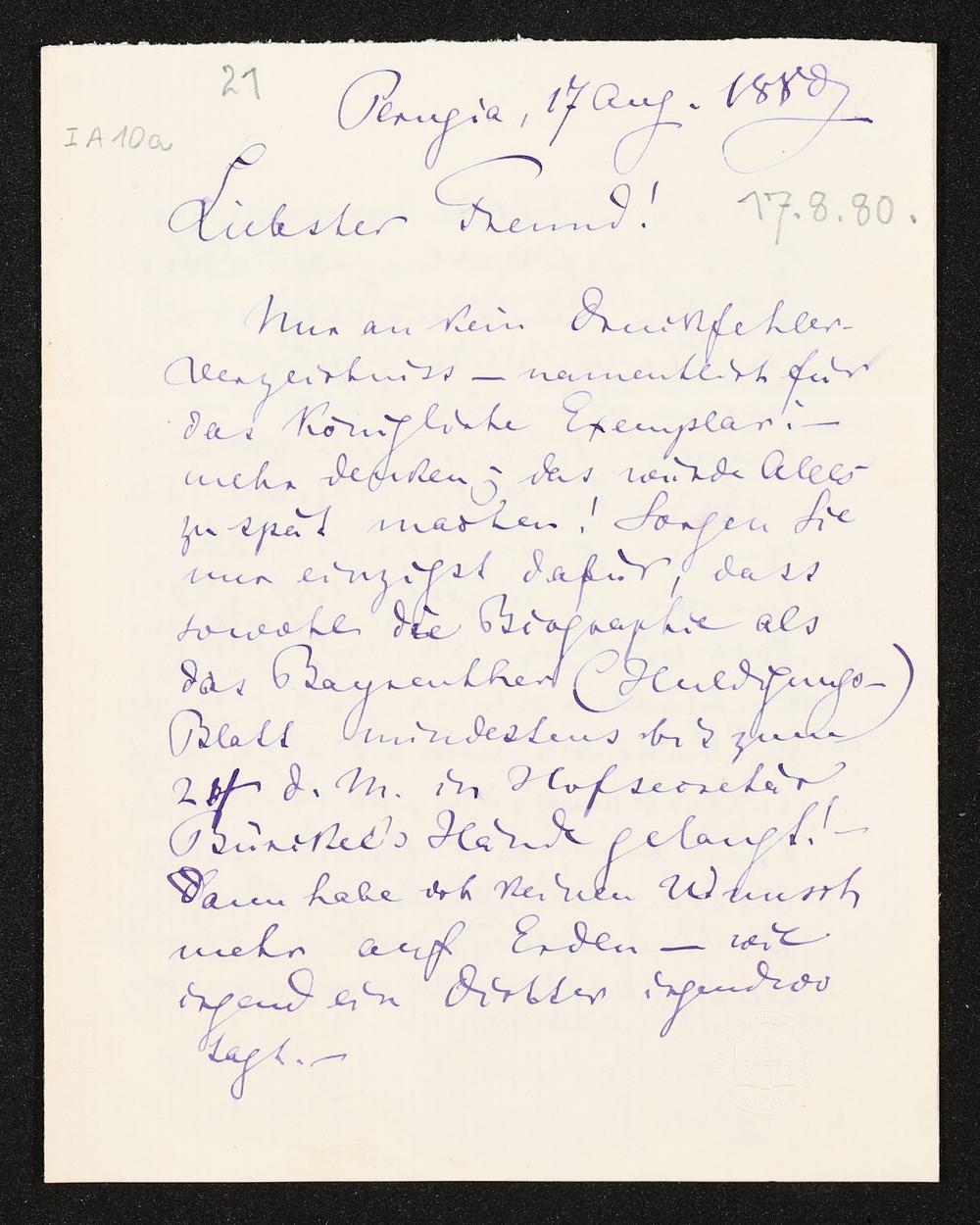 eigenhändiger Brief von Richard Wagner an Hans von Wolzogen