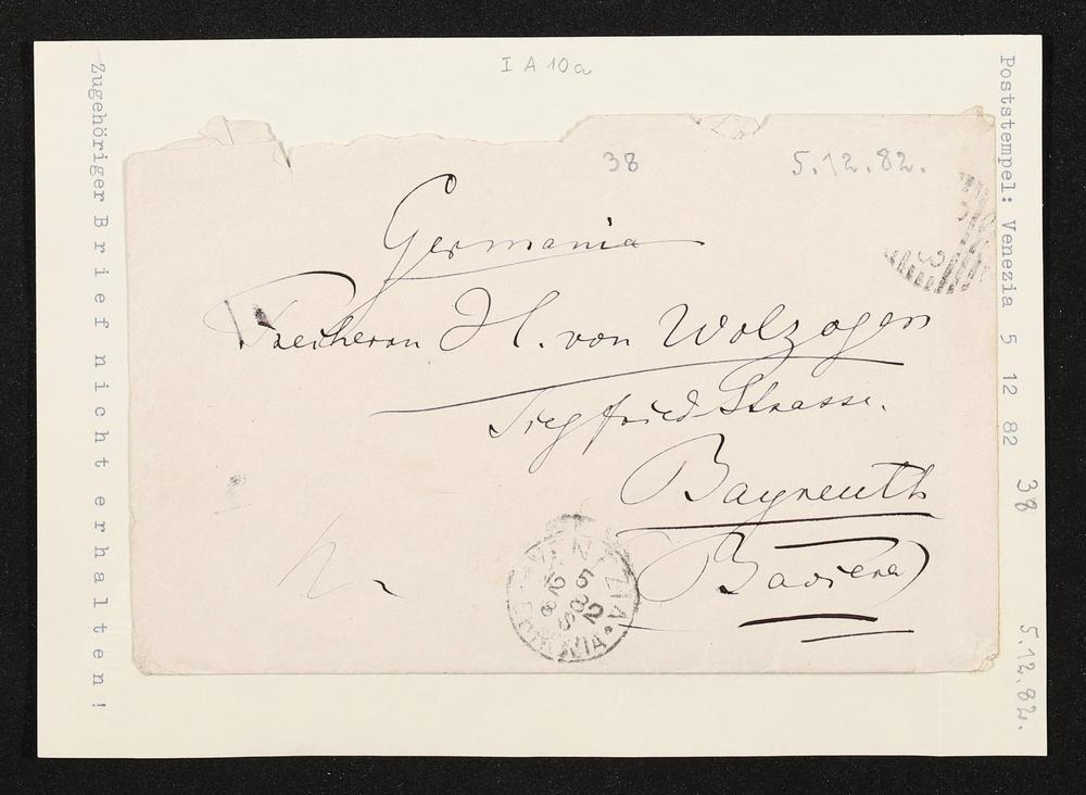 eigenhändig beschrifteter Briefumschlag von Richard Wagner an Hans von Wolzogen