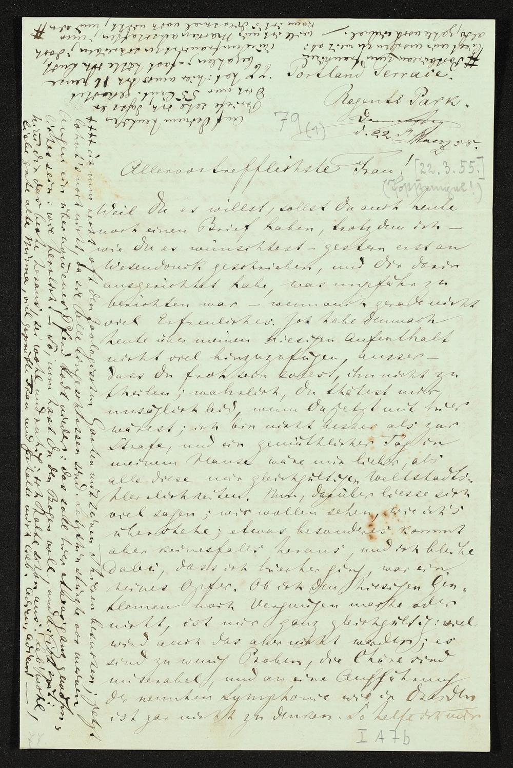 eigenhändiger Brief von Richard Wagner an Minna Wagner