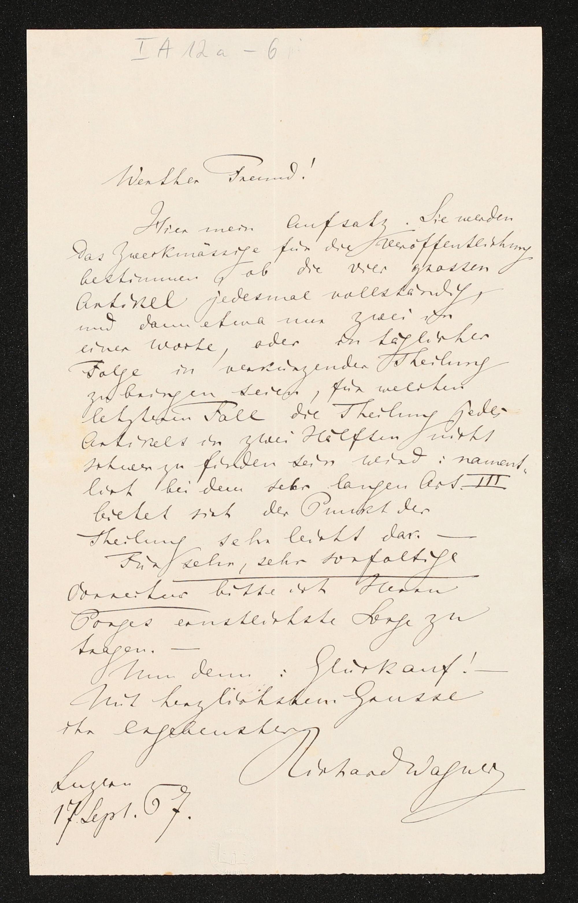eigenhändiger Brief von Richard Wagner an Julius Fröbel
