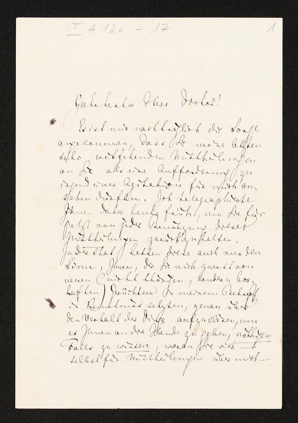 eigenhändiger Brief von Richard Wagner an Julius Lang