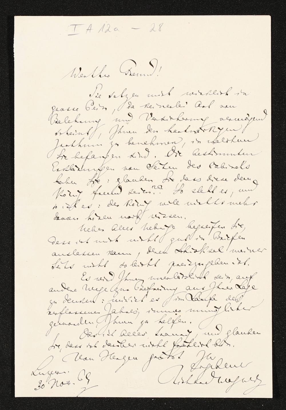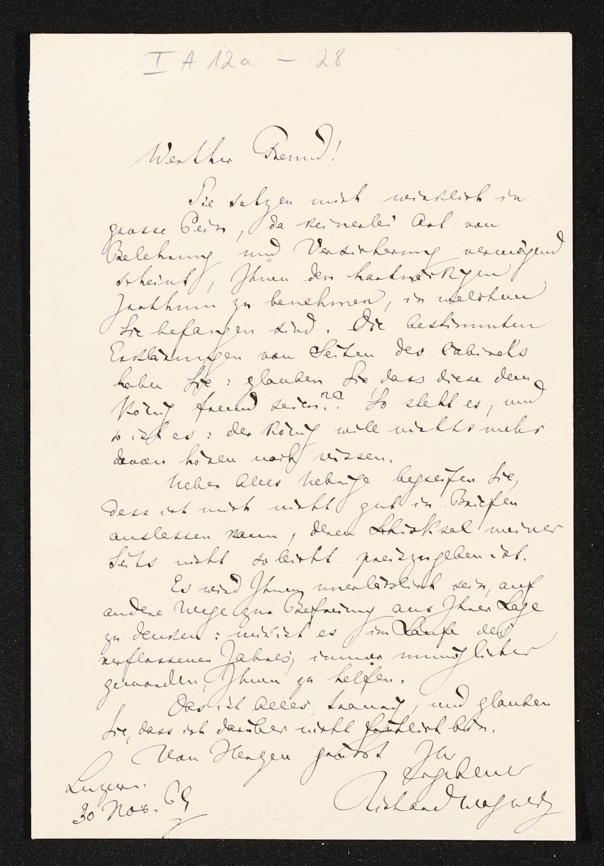 eigenhändiger Brief von Richard Wagner an Ludwig Nohl