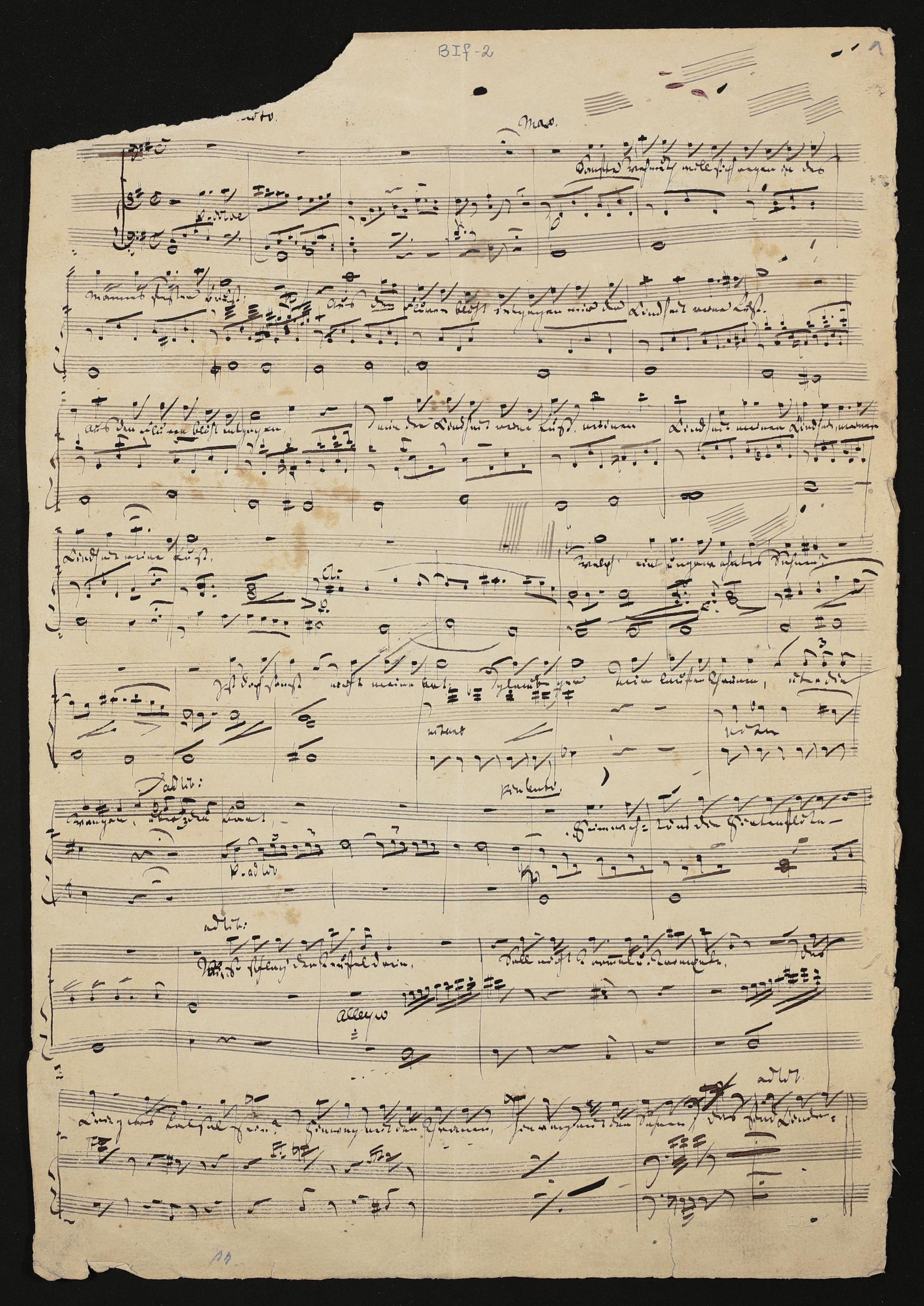 Baßarie in G-Dur "Sanfte Wehmut will sich regen" als Einlage (Max) in Carl Blums komische Oper in einem Aufzug "Mary, Max und Michel", eigenhändiger Entwurf und Einzelskizzen von Richard Wagner