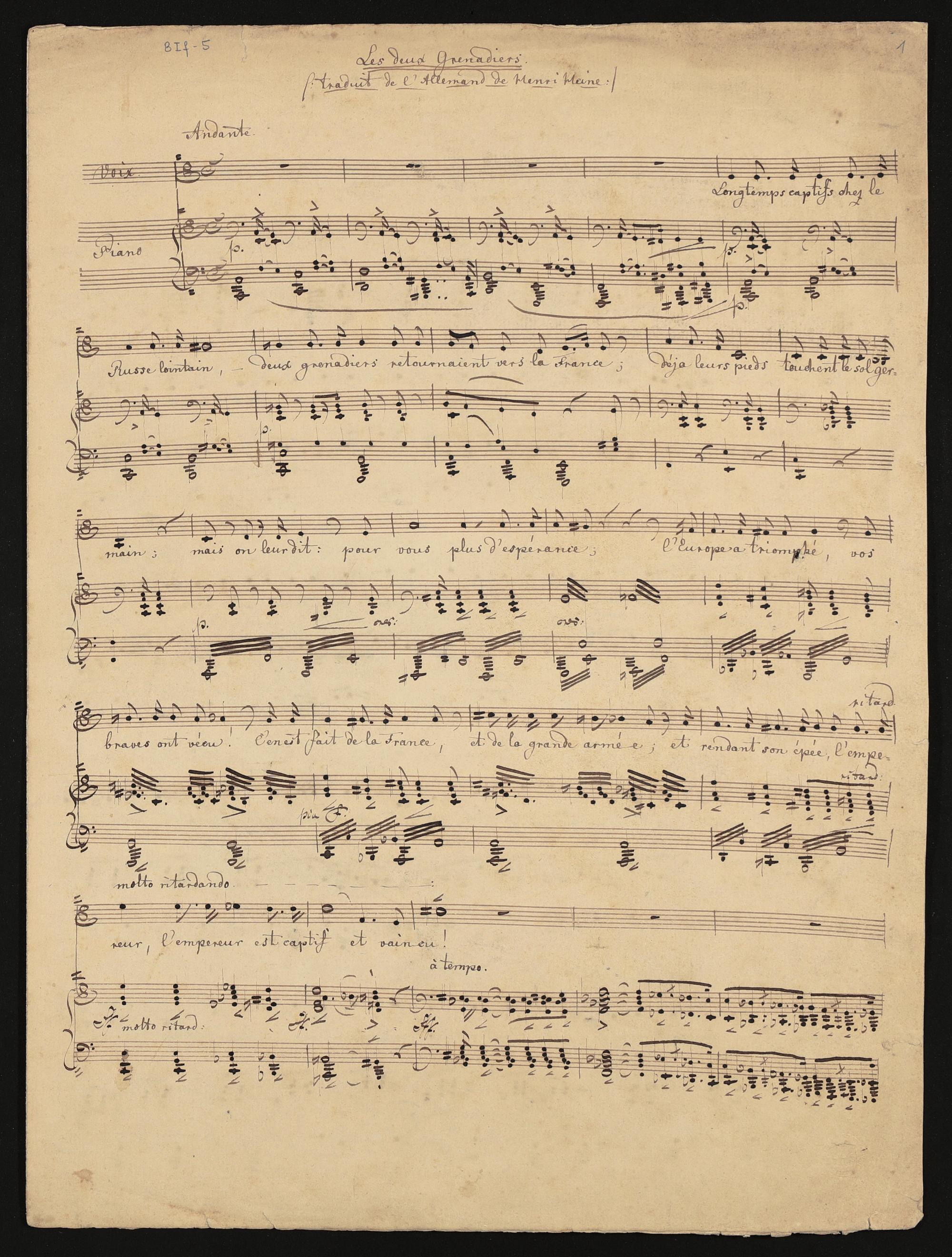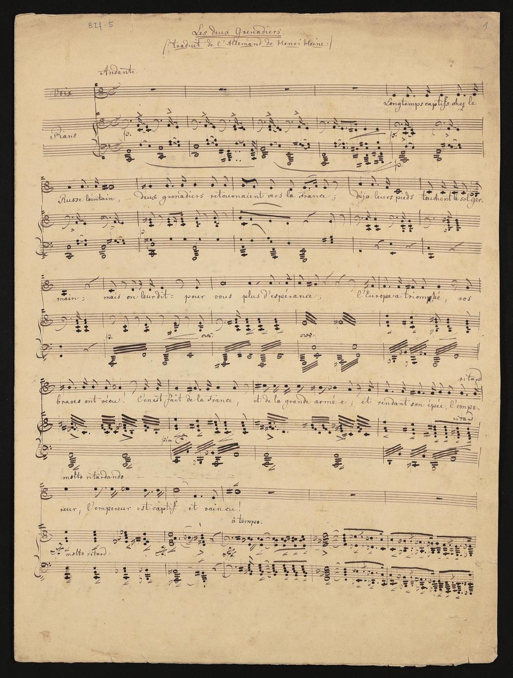 Les deux Grenadiers : Lied für Singstimme (Bariton) und Klavier in a-Moll, eigenhändige unvollständige Reinschrift von Richard Wagner