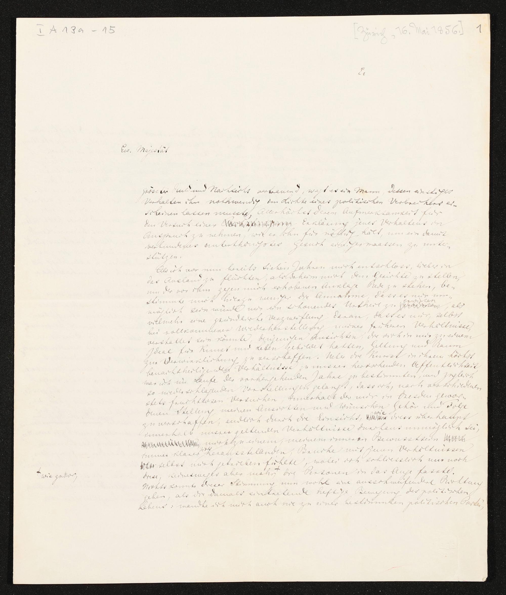 eigenhändiges Briefkonzept von Richard Wagner an König Johann I. von Sachsen