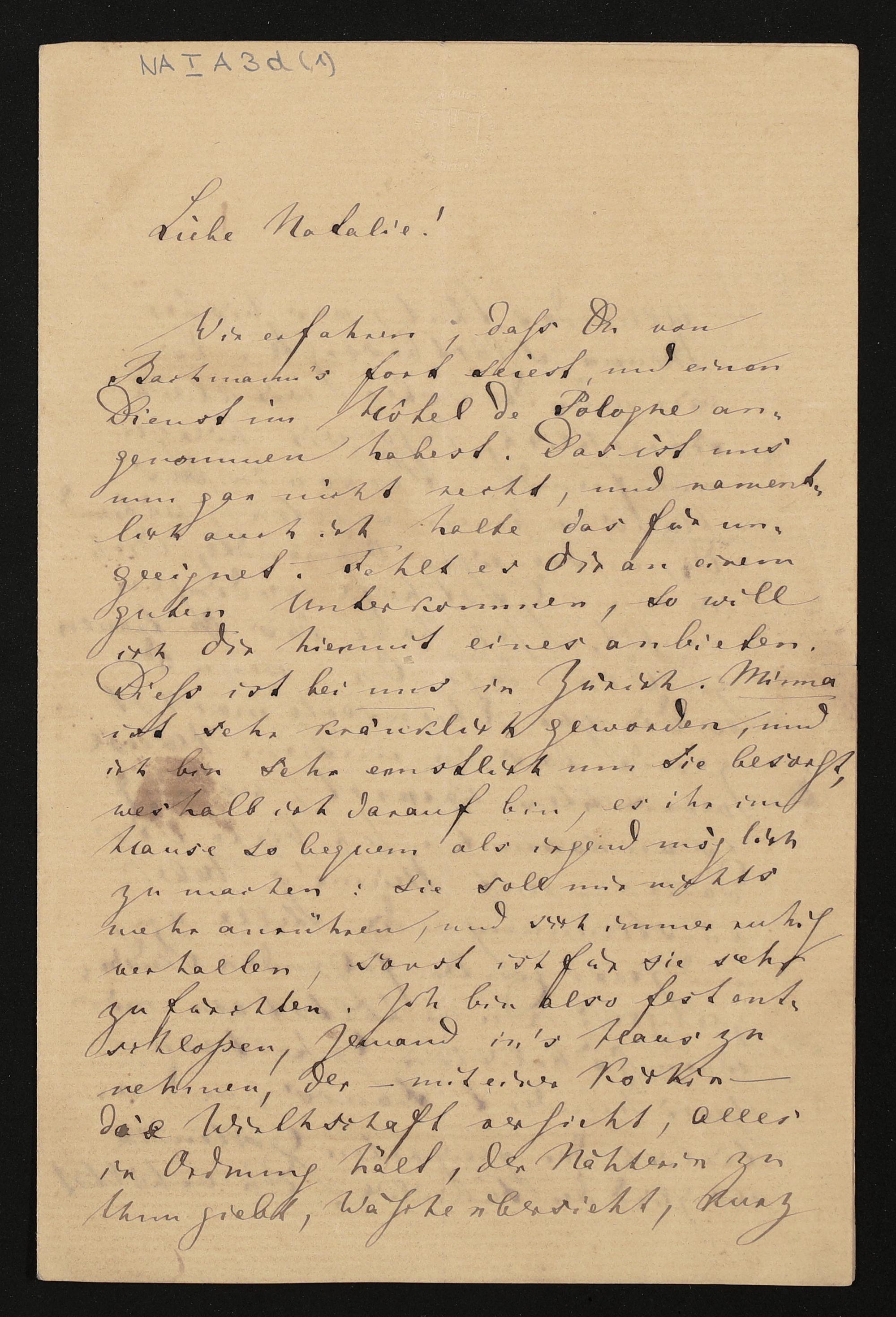 eigenhändiger Brief von Richard Wagner an Natalie Planer