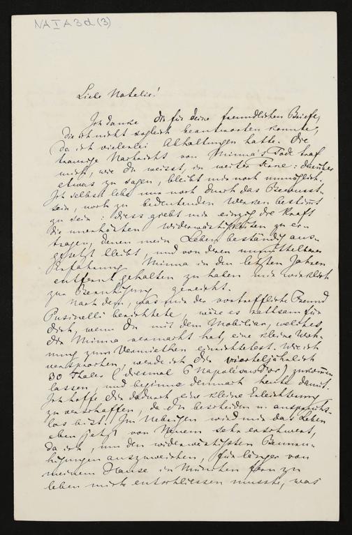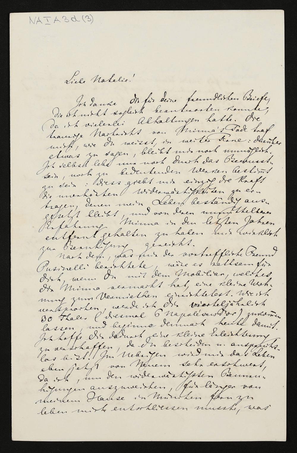 eigenhändiger Brief von Richard Wagner an Natalie Planer