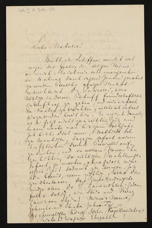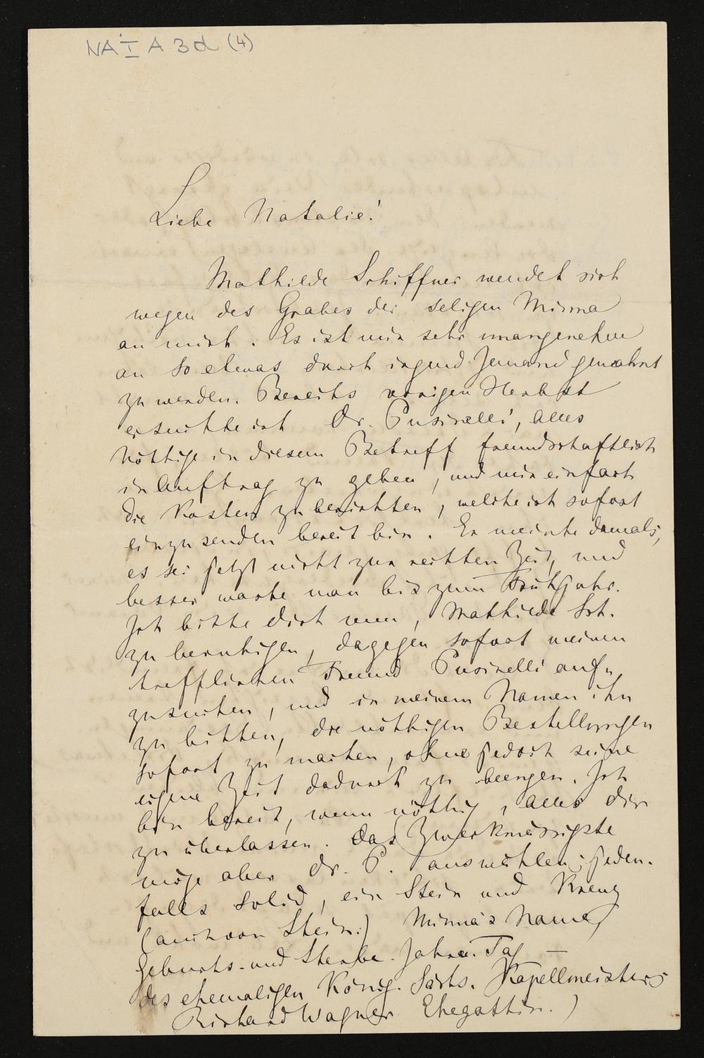 eigenhändiger Brief von Richard Wagner an Natalie Planer