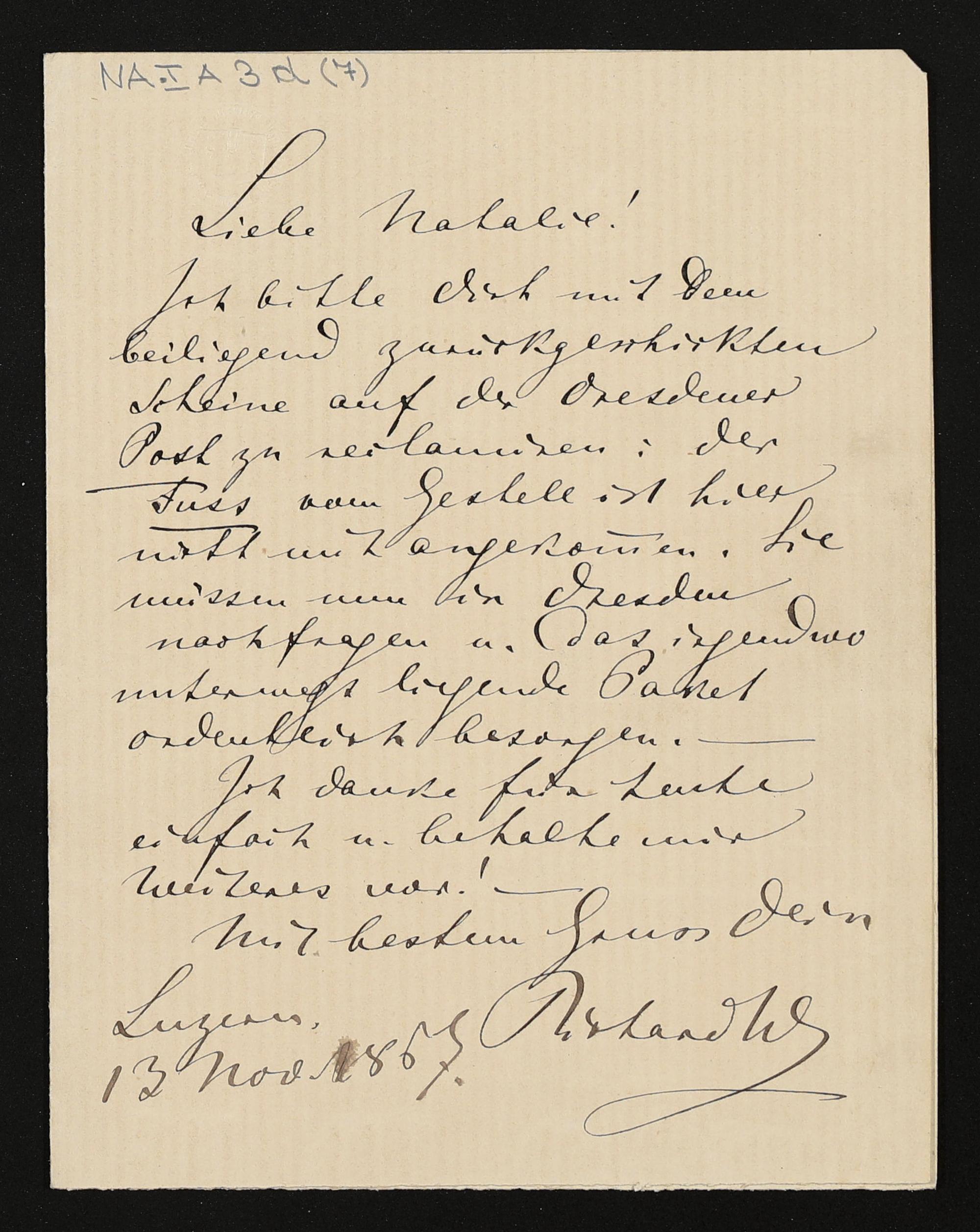 eigenhändiger Brief von Richard Wagner an Natalie Planer
