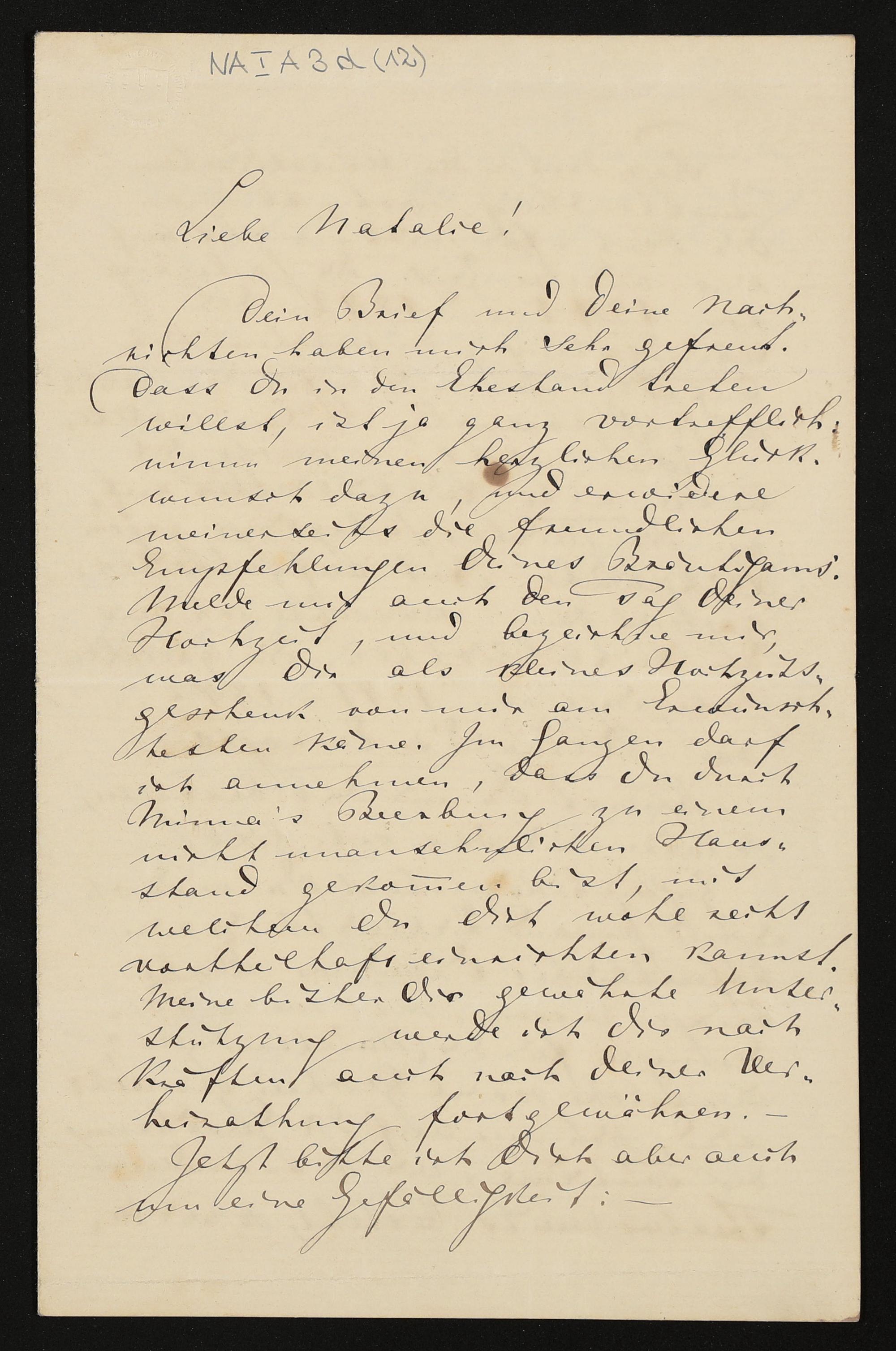 eigenhändiger Brief von Richard Wagner an Natalie Planer