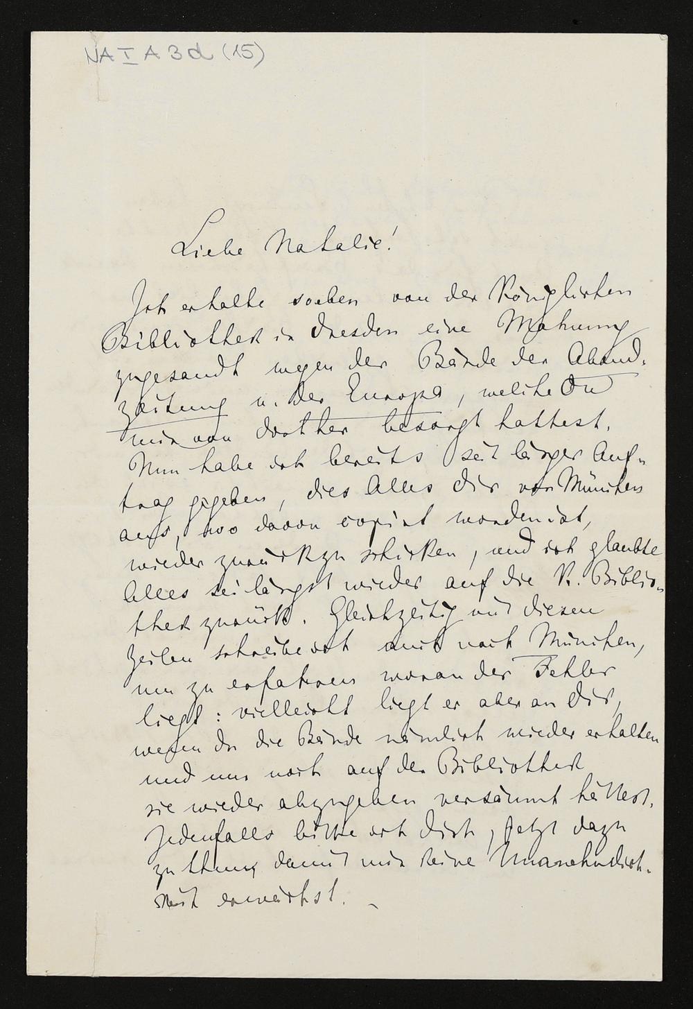 eigenhändiger Brief von Richard Wagner an Natalie Planer