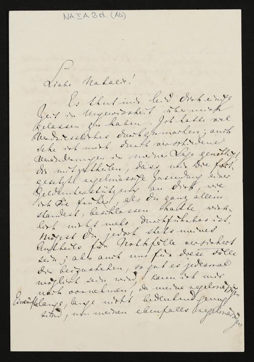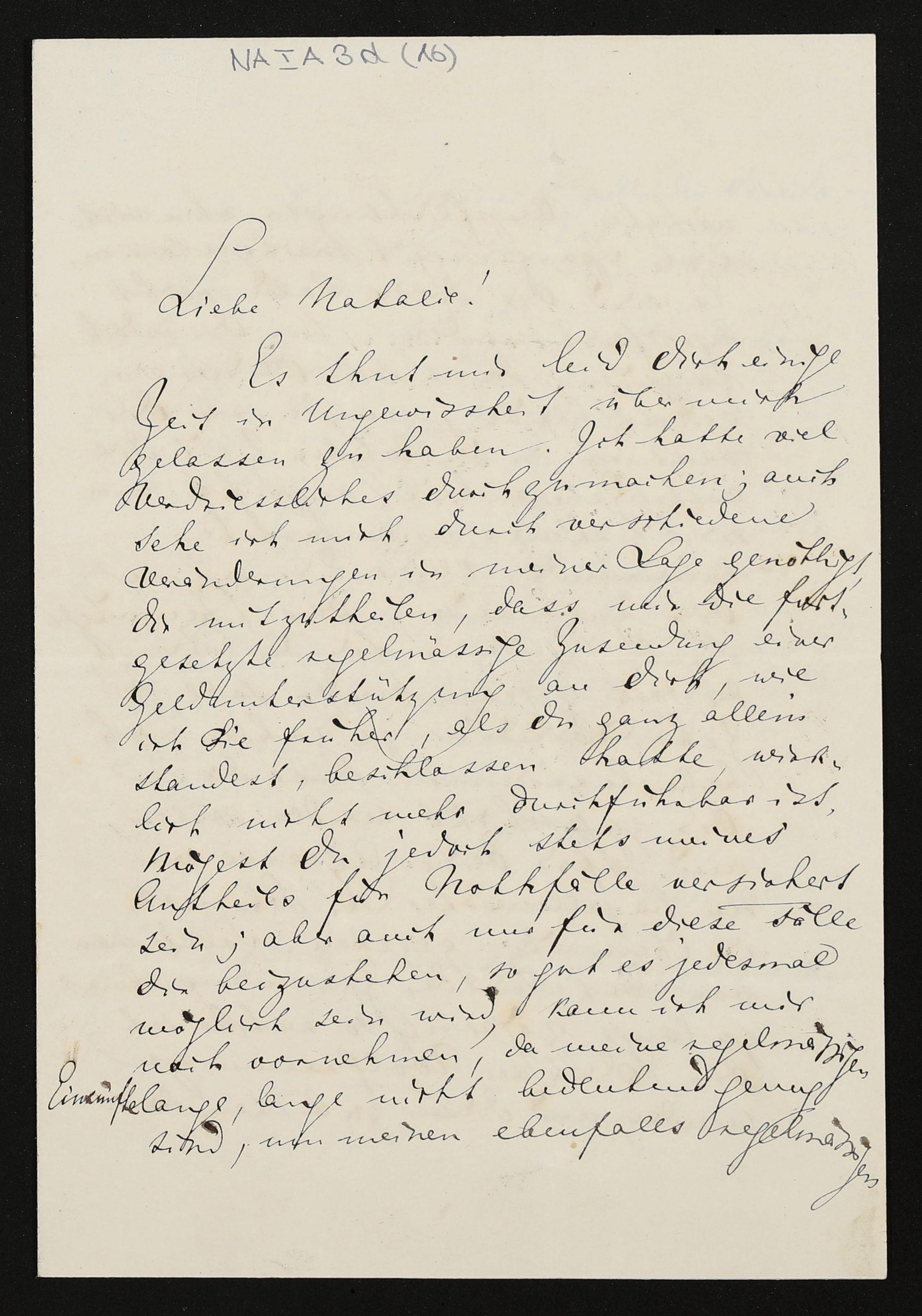 eigenhändiger Brief von Richard Wagner an Natalie Planer