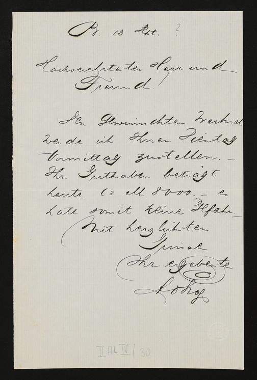 eigenhändiger Brief von Adolf von Gross an Richard Wagner