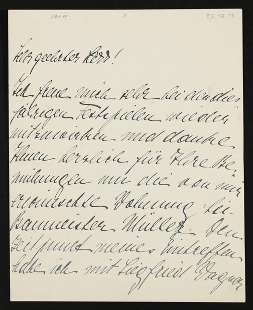eigenhändiger Brief von Anna Bahr-Mildenburg mutmaßlich an Friedrich Wilhelm Schuler