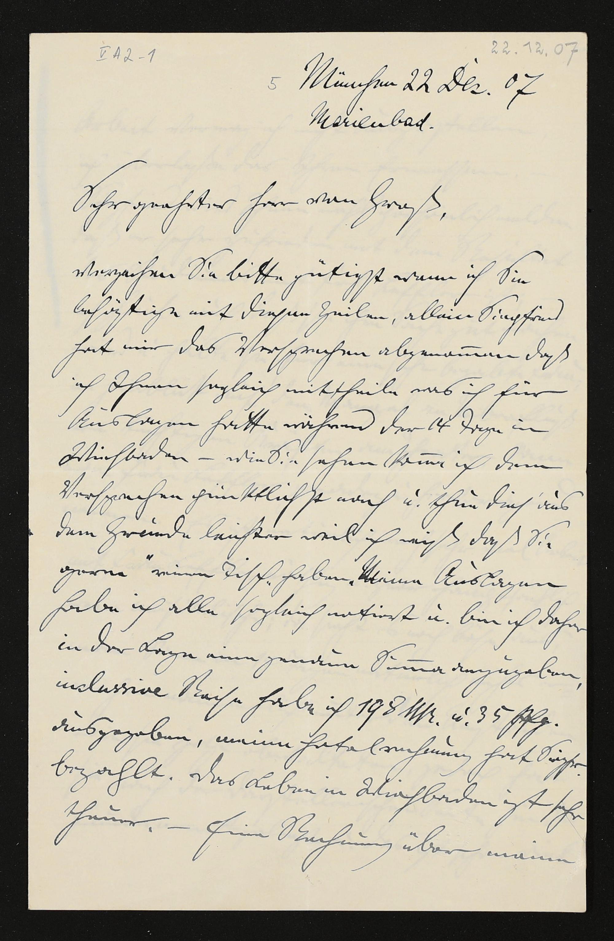 eigenhändiger Brief von Michael Balling an Adolf von Gross