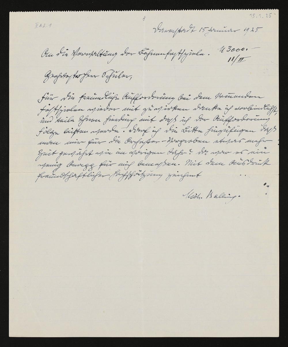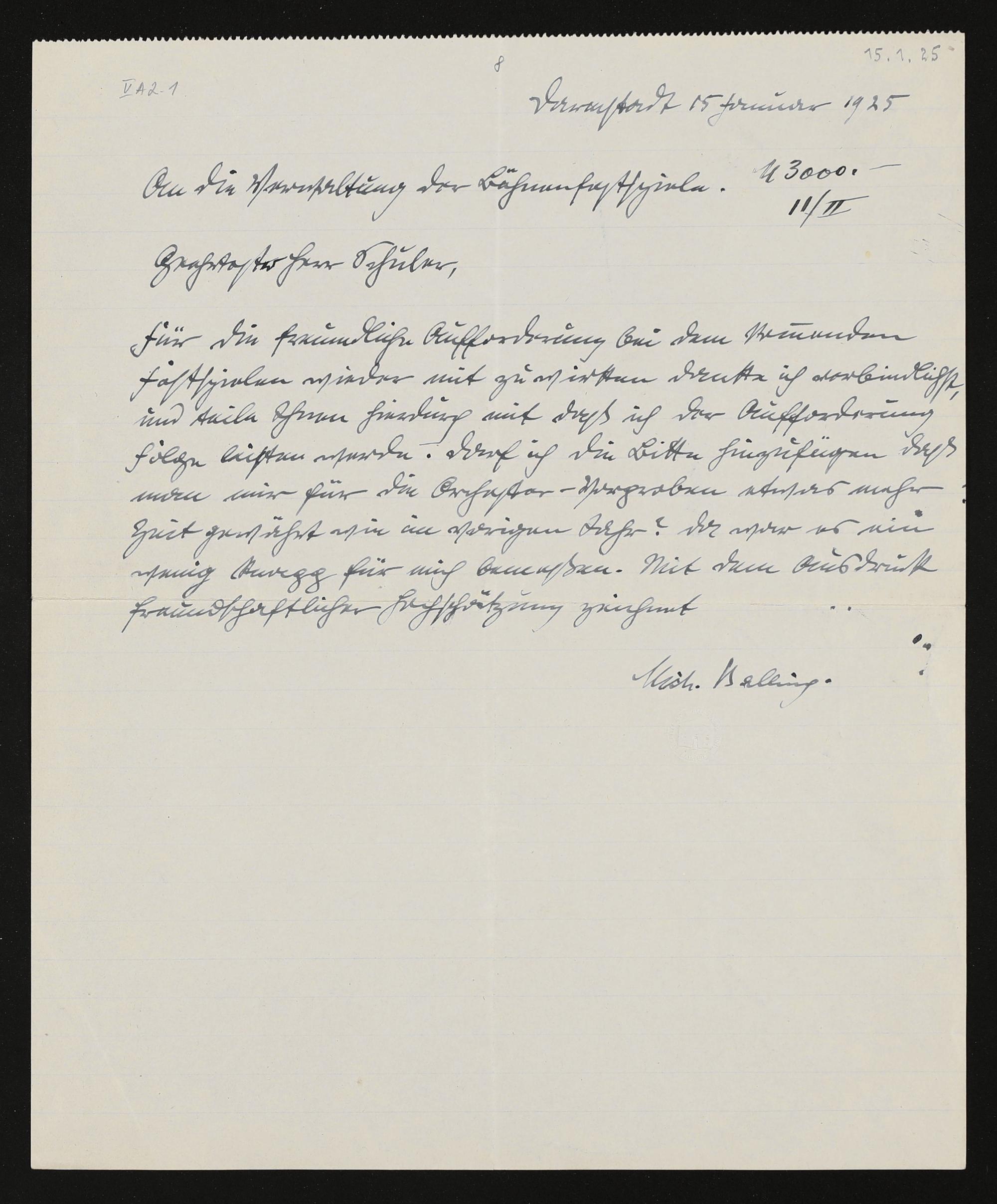 eigenhändiger Brief von Michael Balling an Friedrich Wilhelm Schuler