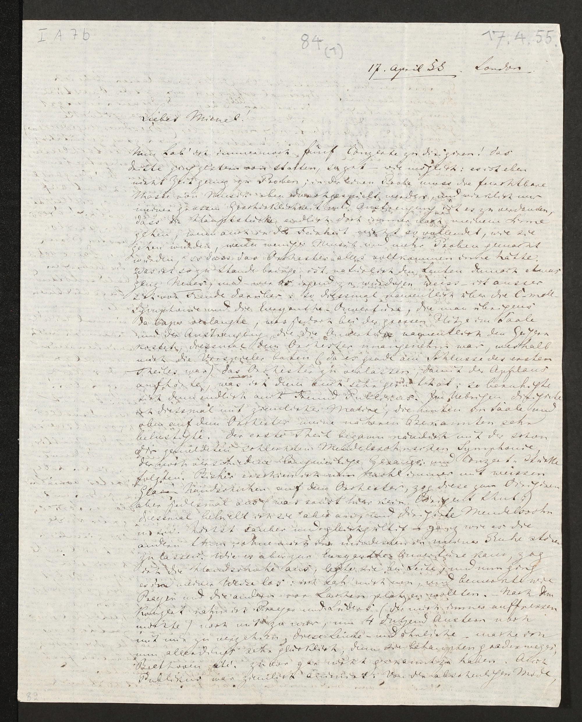 eigenhändiger Brief von Richard Wagner an Minna Wagner