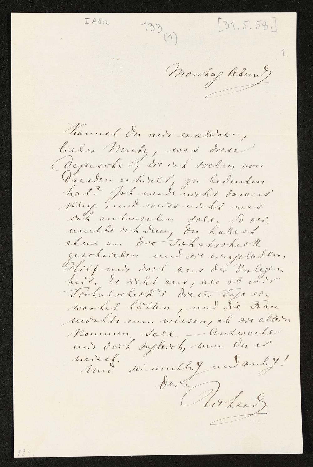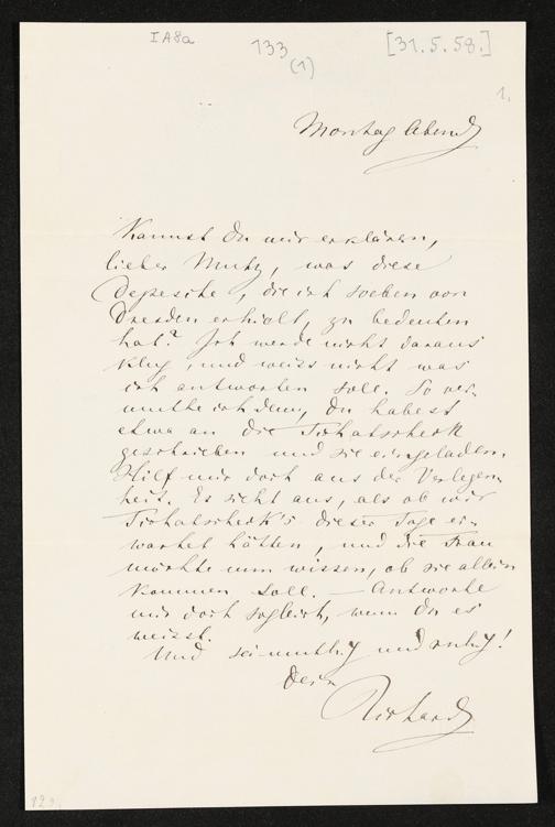eigenhändiger Brief von Richard Wagner an Minna Wagner