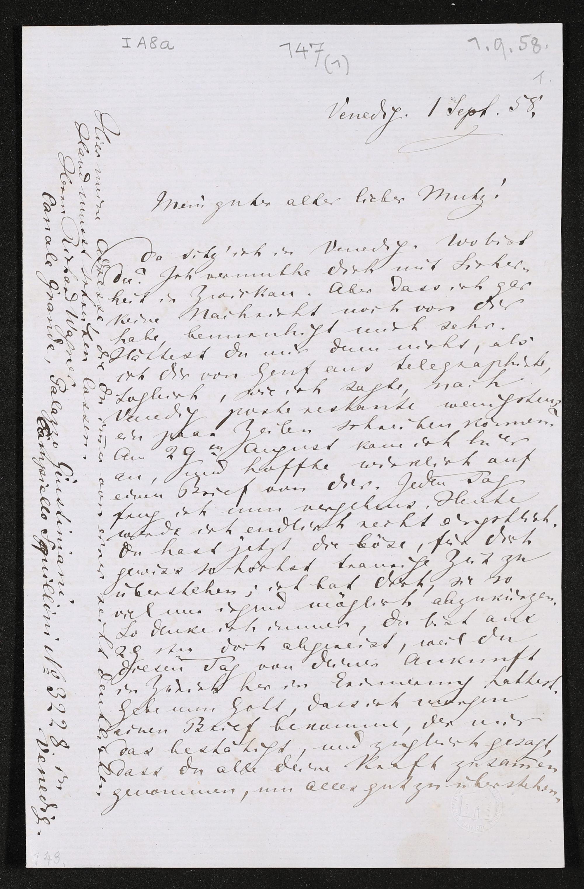 eigenhändiger Brief von Richard Wagner an Minna Wagner