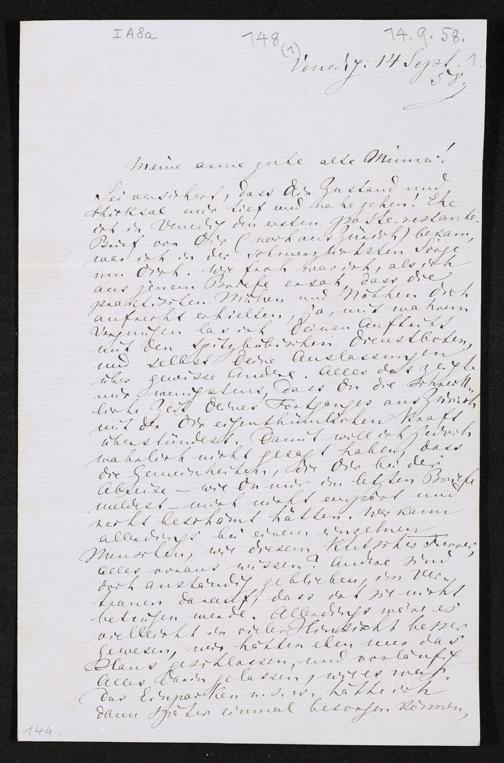 eigenhändiger Brief von Richard Wagner an Minna Wagner
