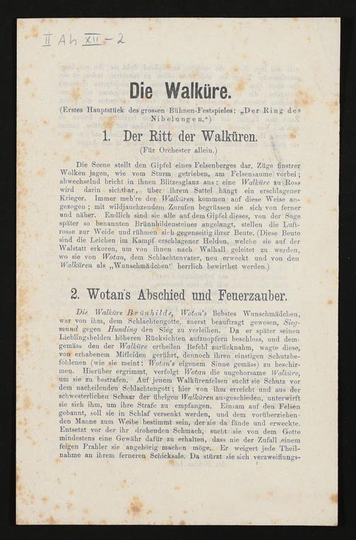 Die Walküre (Erstes Hauptstück des großen Bühnen-Festspieles: "Der Ring der Nibelungen") von Richard Wagner, Druckschrift