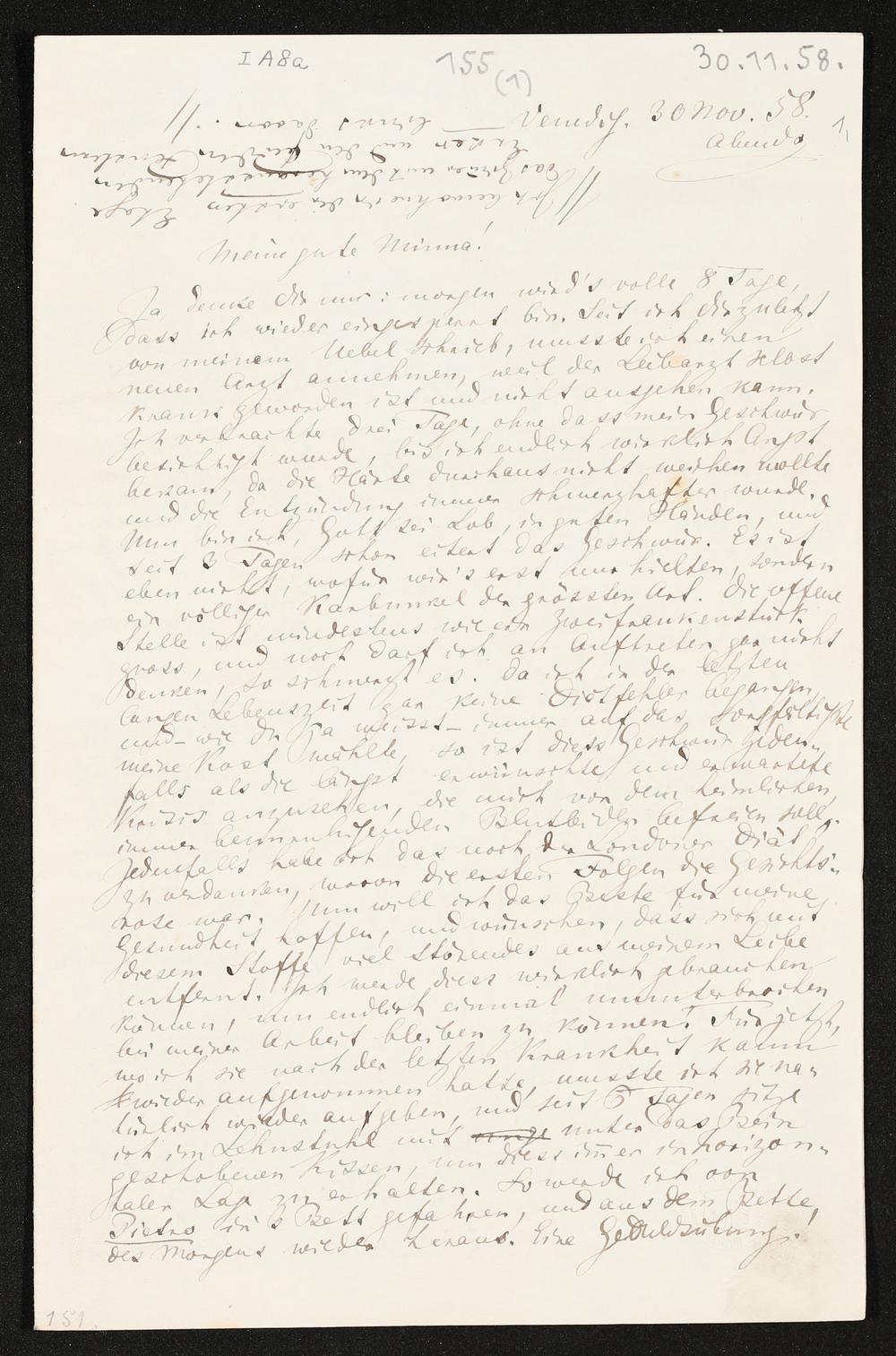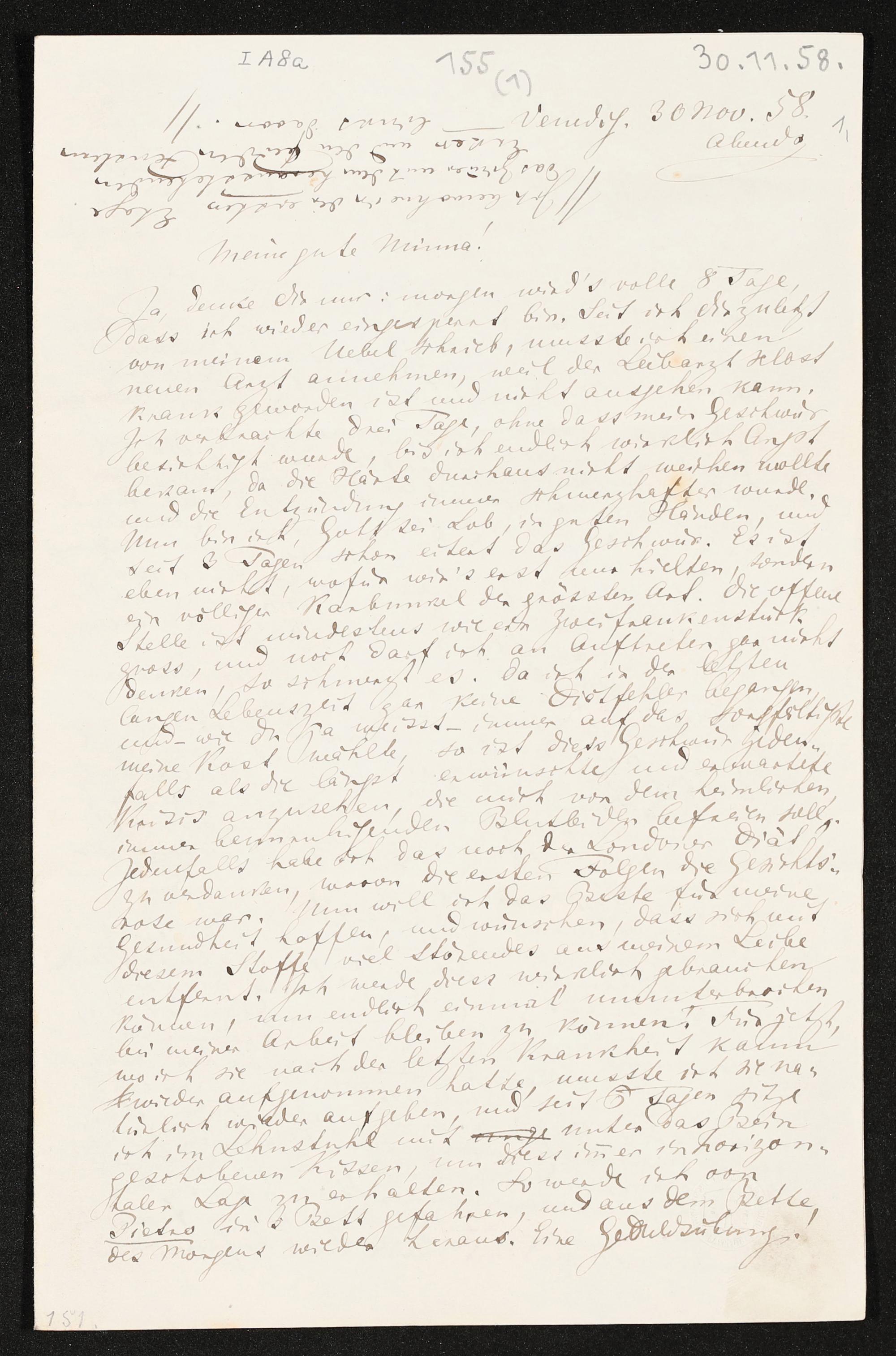 eigenhändiger Brief von Richard Wagner an Minna Wagner
