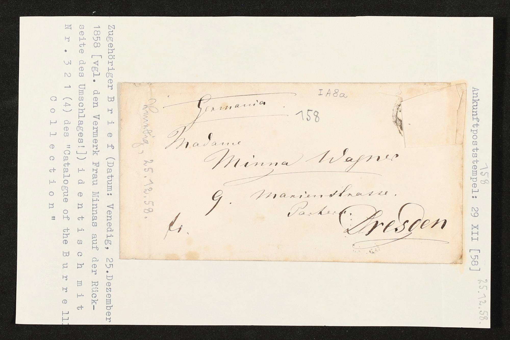 eigenhändig beschrifteter Briefumschlag von Richard Wagner an Minna Wagner