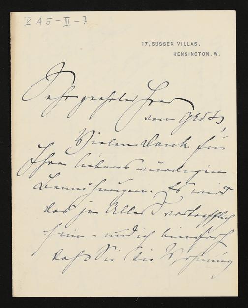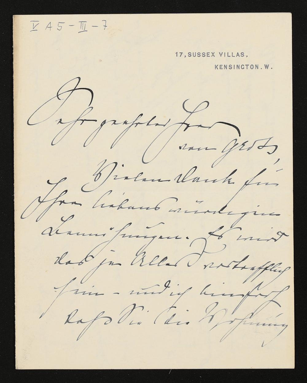 eigenhändiger Brief von Marie Brema an Adolf von Gross