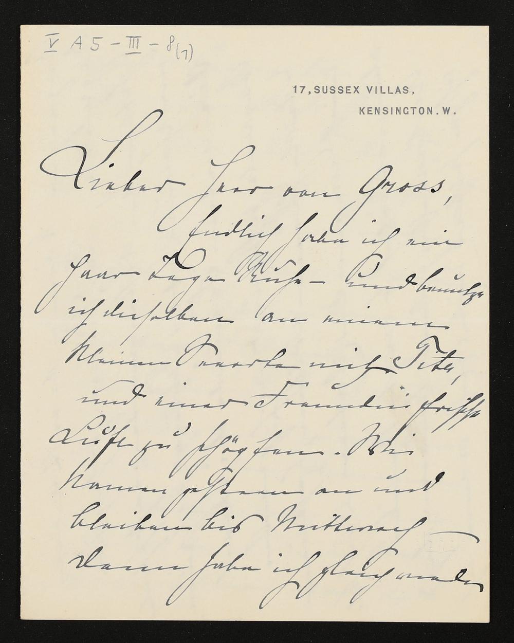 eigenhändiger Brief von Marie Brema an Adolf von Gross