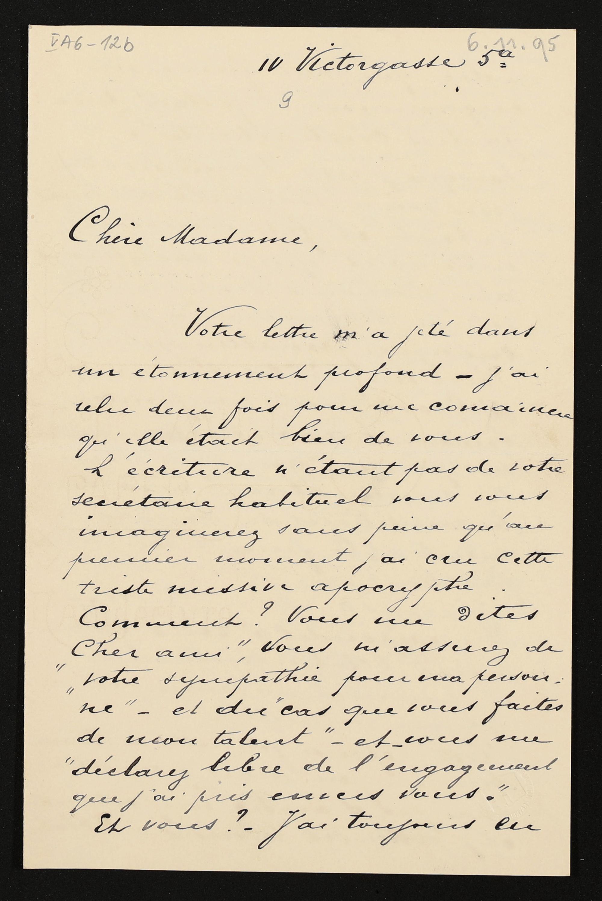 eigenhändiger Brief von Ernest van Dyk an Cosima Wagner