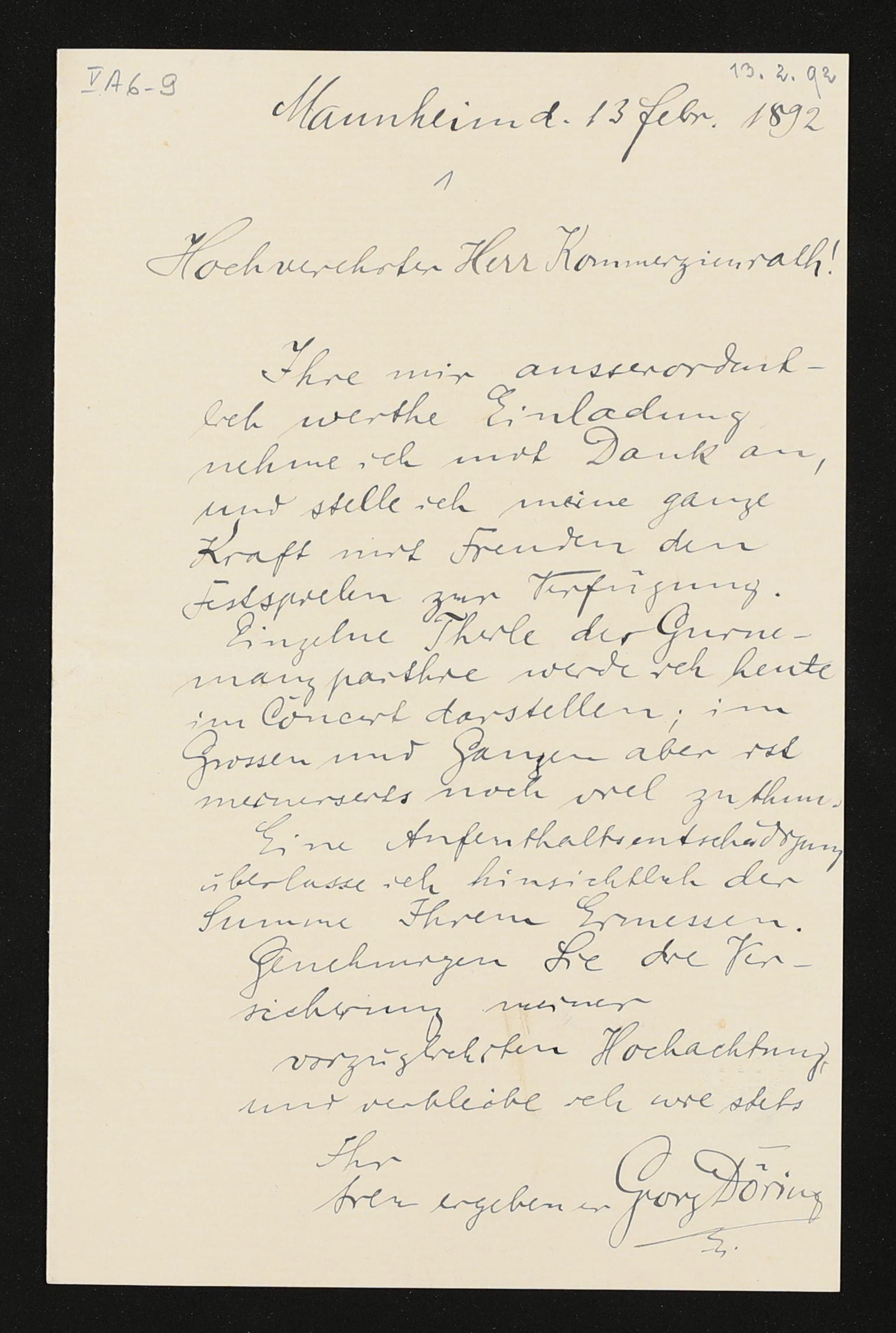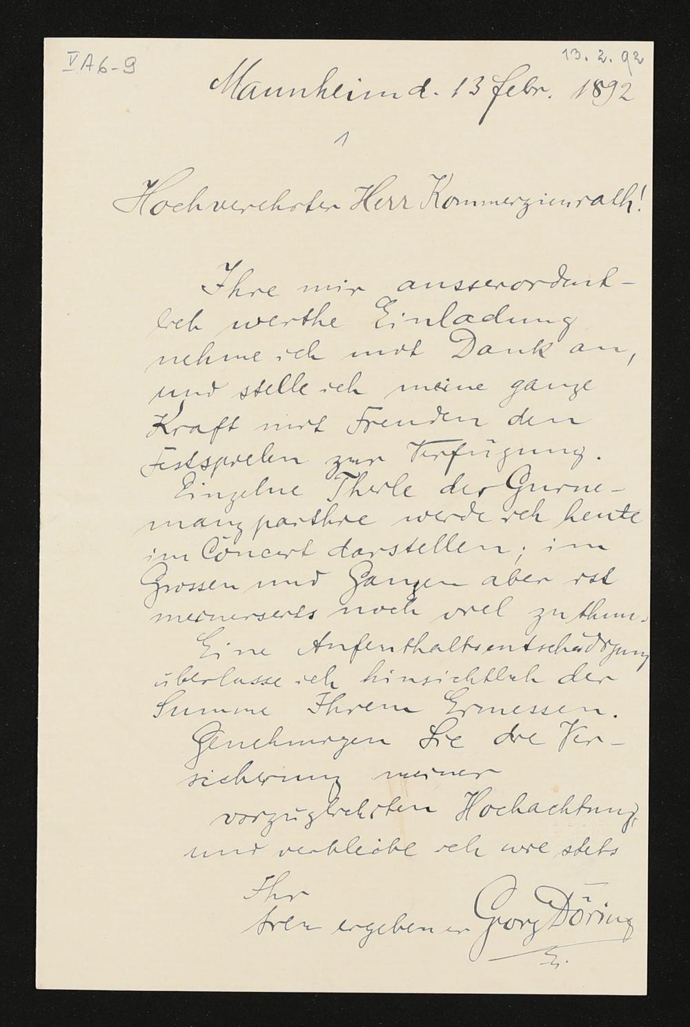 eigenhändiger Brief von Georg Döring an Adolf von Gross