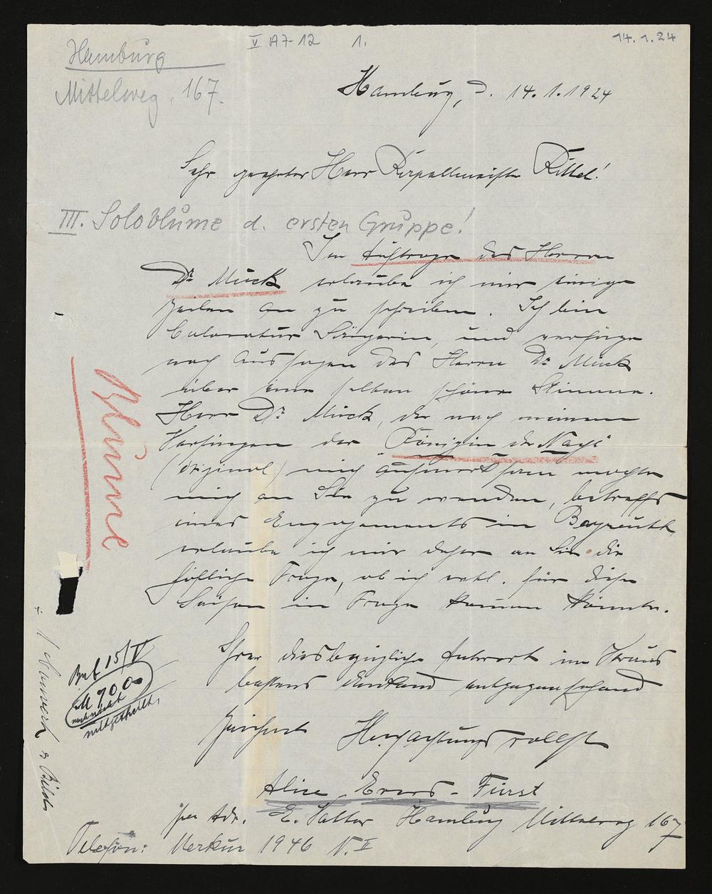 eigenhändiger Brief von Alice Evers-Fürst an Karl Kittel
