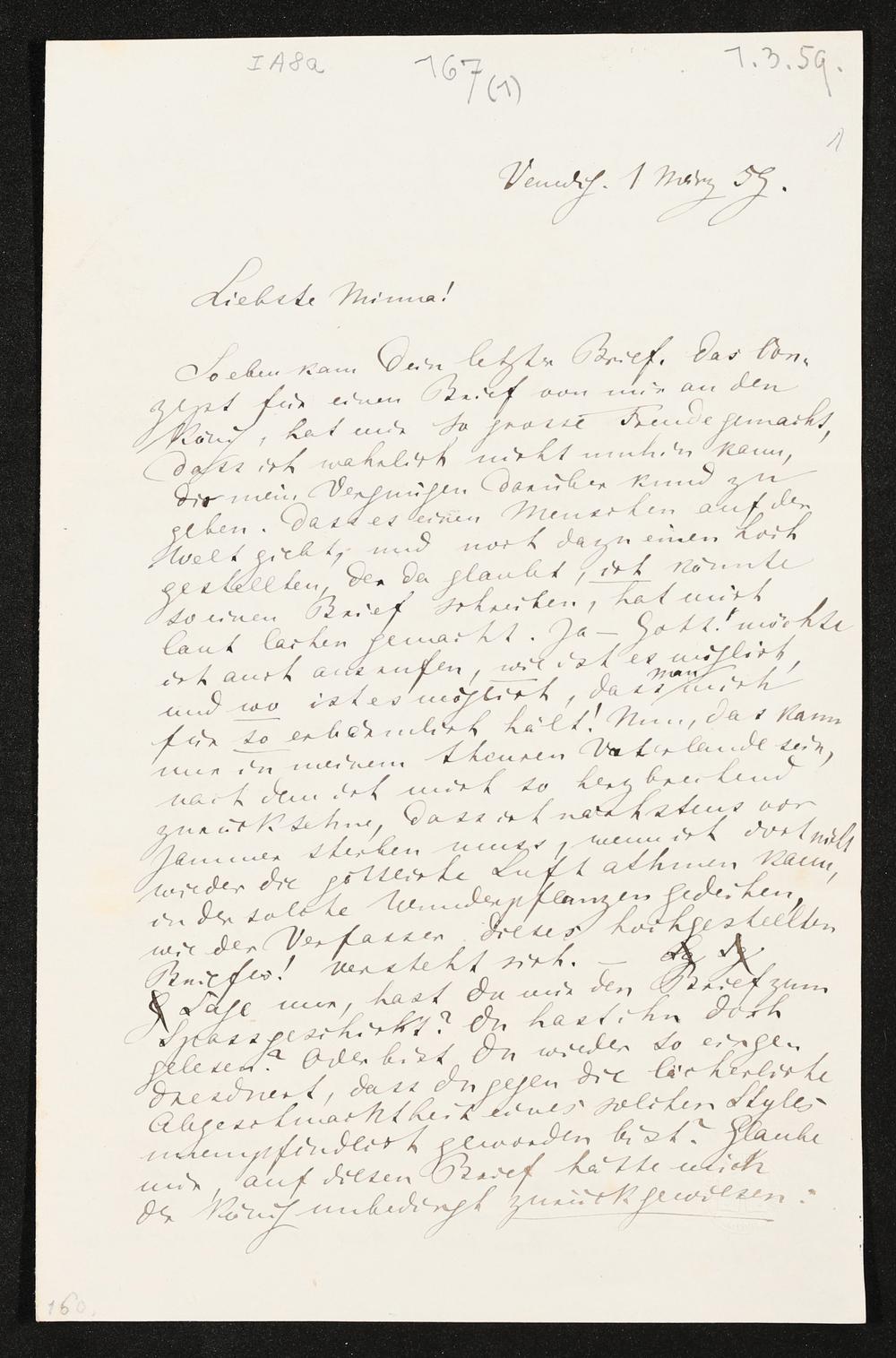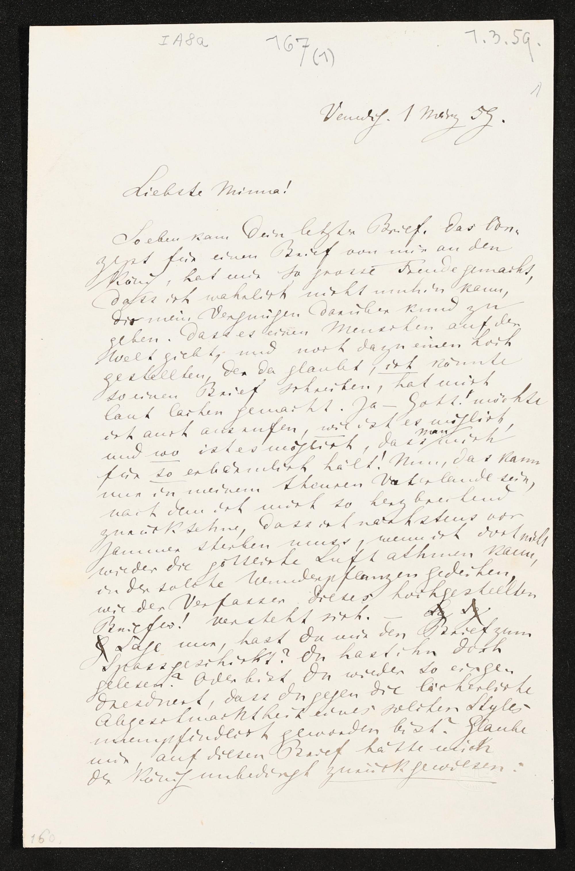 eigenhändiger Brief von Richard Wagner an Minna Wagner